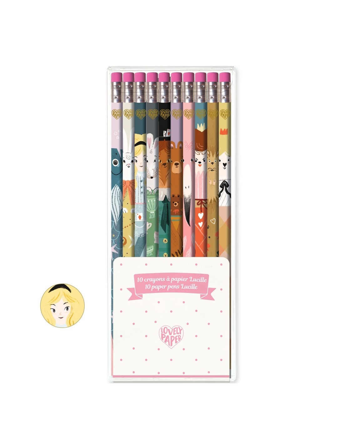 Els 10 llapis Lucille ofereixen una experiència d'escriptura i dibuix excepcional amb el seu grafit d'alta qualitat. Dissenyats per inspirar la creativitat dels nens a partir dels 6 anys, aquests llapis formen part de l'encantadora col·lecció Lovely Paper de Djeco, que combina funcionalitat i estètica de manera única.