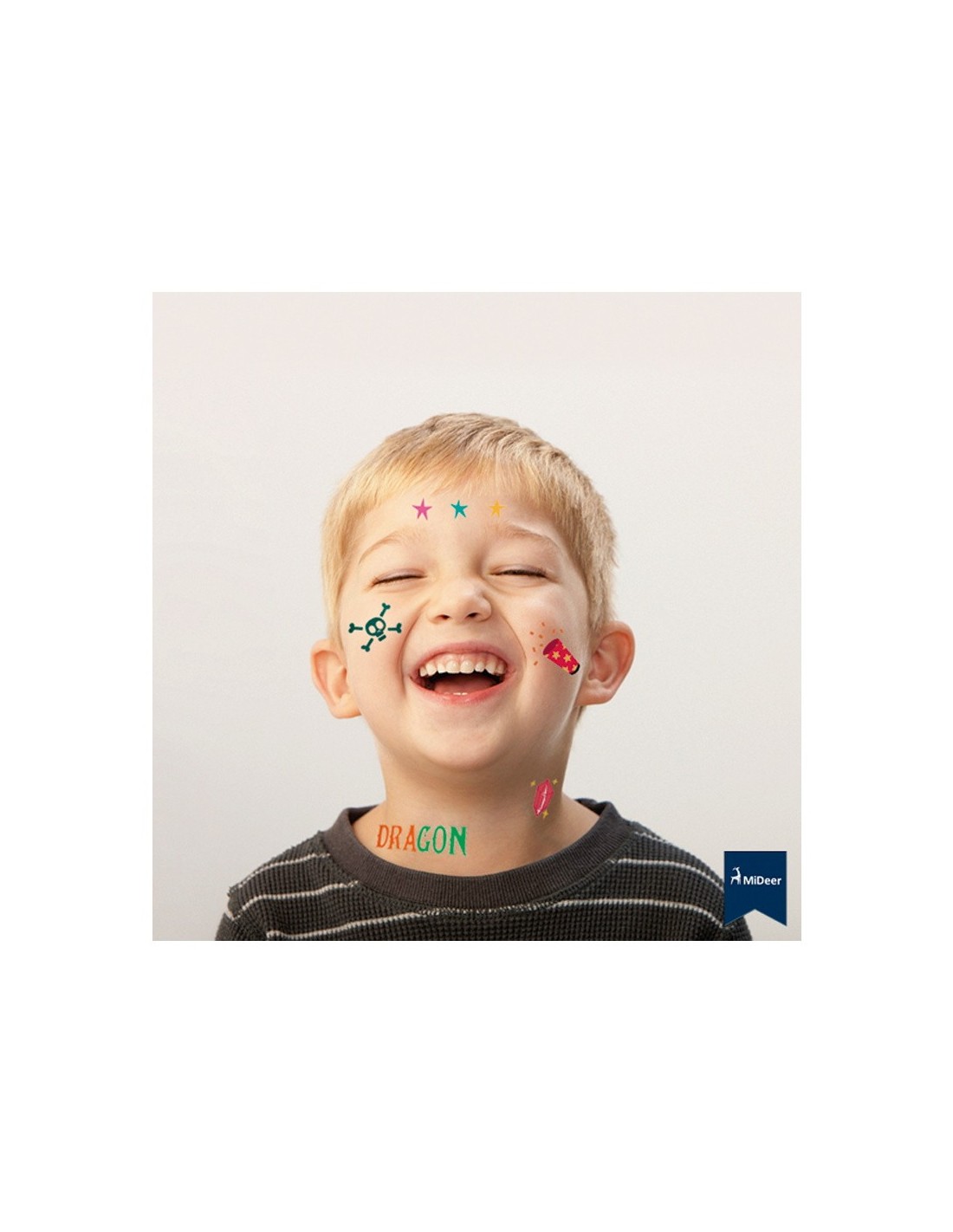 Caixa de 234 Tatuatges temporals per a ungles i pell. Inclou motius de Pirates, Animals, Cavallers i Mags. Retalla el disseny que més t'agradi, retira la pel·lícula transparent i pressiona el disseny del tatuatge mullat cap a la teva pell. Espera 25 segons i desenganxa el paper del tattoo. ¡Ja el tens!