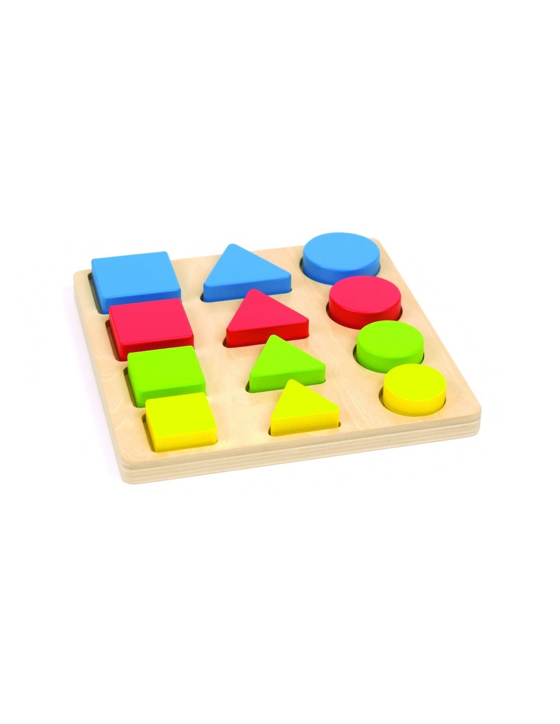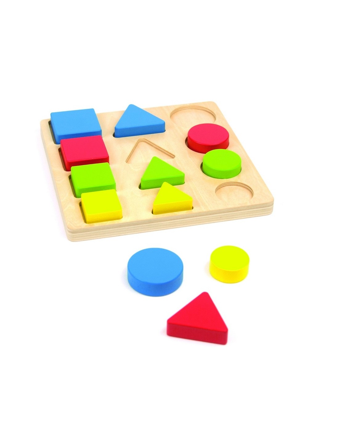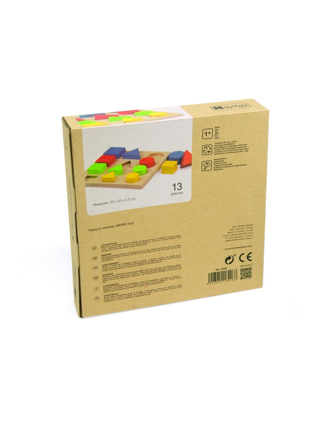 Una fantàstica joguina educativa per introduir i ensenyar conceptes múltiples als petits. Per exemple, podràs ensenyar les formes geomètriques, les mesures i el color, a través d'activitats divertides com apilar, classificar i contar. Els nens es divertiran molt col·locant les peces en el lloc apropiat de la base. Aquesta base està feta de fusta resistent i té un grossor de 1,3 cm. Les formes de fusta també es poden utilitzar com blocs de construcció i per apilar. A part d'ensenyar les formes geomètriques, els colors i les mesures, aquesta joguina també desenvolupa la coordinació ull-mà i les habilitats motores.
