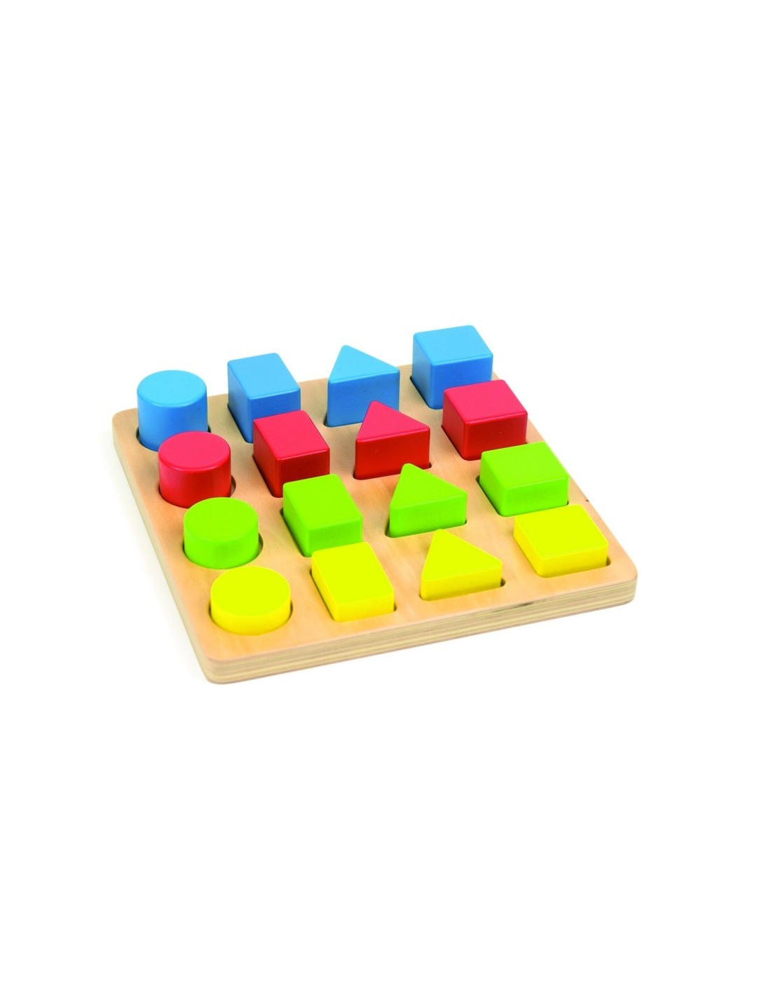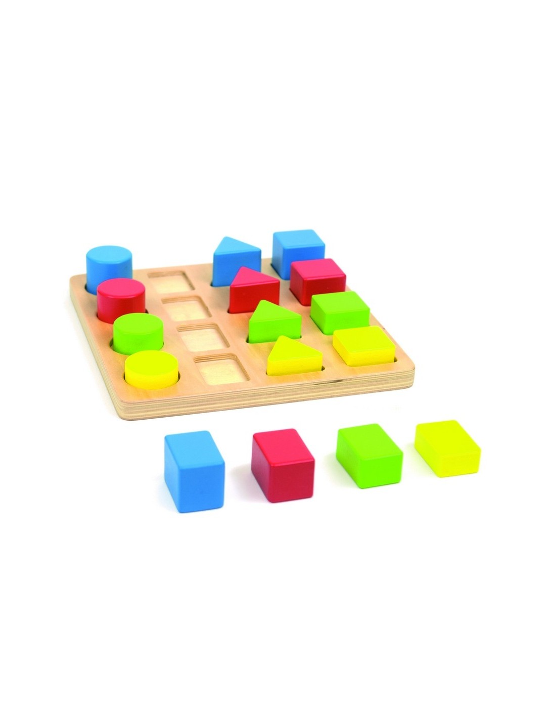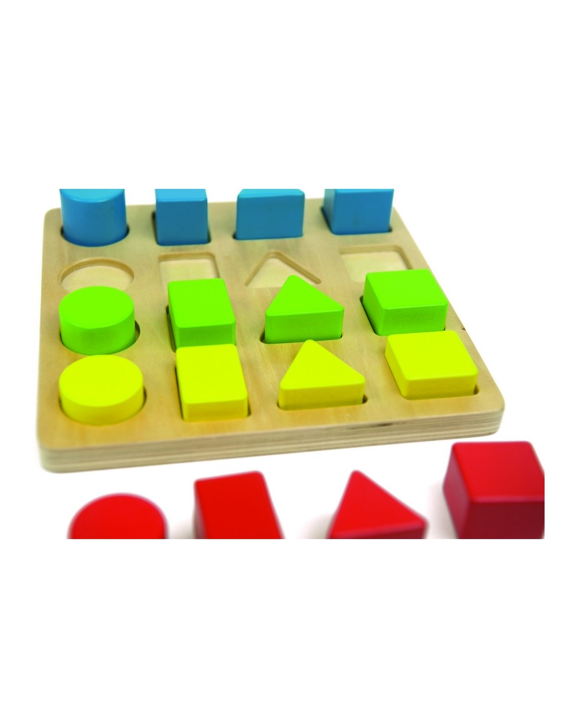Una fantàstica joguina educativa per introduir i ensenyar conceptes múltiples als petits. Per exemple, podràs ensenyar les formes geomètriques, les mesures i el color, a través d'activitats divertides com apilar, classificar i contar. En aquest cas, disposes de 4 files diferents amb formes de diferents mesures i colors per jugar i descobrir. Els nens es divertiran molt col·locant les peces al lloc apropiat de la base. Aquesta base està feta de fusta resistent i té un grossor de 1,3 cm. Les formes de fusta tamé es poden utilitzar com a blocs de construcció i apilament. A part d'ensenyar les formes geomètriques, els colors i les mesures, aquesta joguina també desenvolupa la coordinació ull-mà i les habilitats motores.