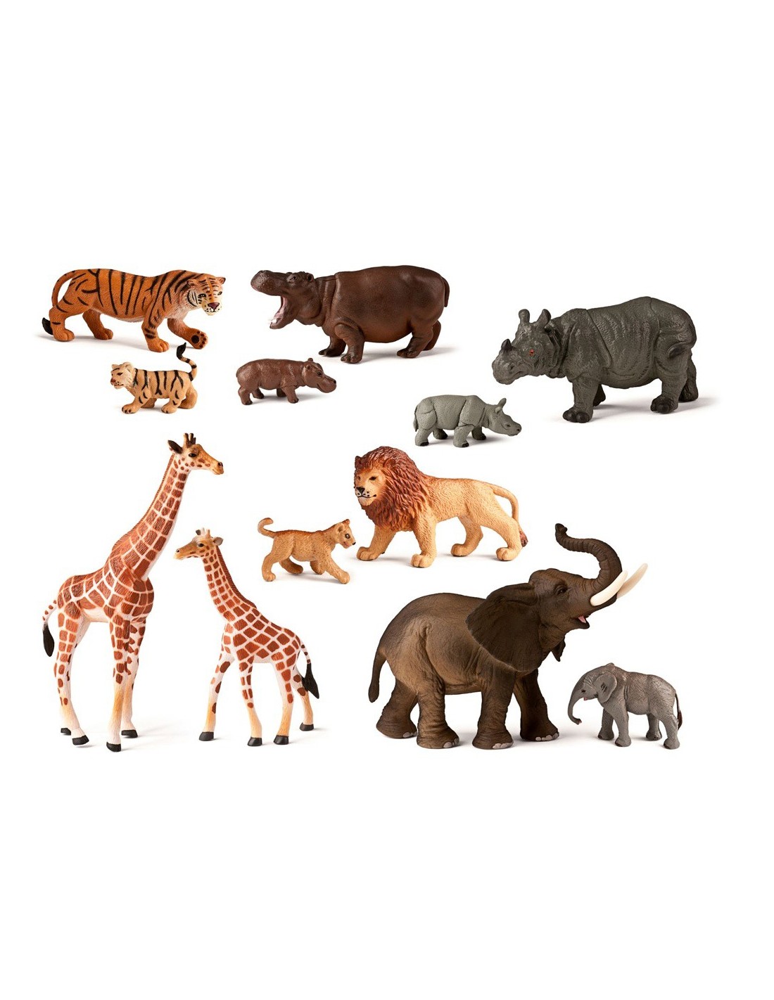 De la mà de Miniland et presentem aquest pack de 12 animals bebès de la selva, una àmplia selecció d'animals fabricats en plàstic molt resistent i d'alta qualitat que reprodueixen diferents espècies. En aquest pack trobaràs a la girafa amb cria, lleó amb cadell, elefant amb cria, tigre amb cria, hipopòtam amb cria, rinoceront amb cria i 1 guia didàctica.