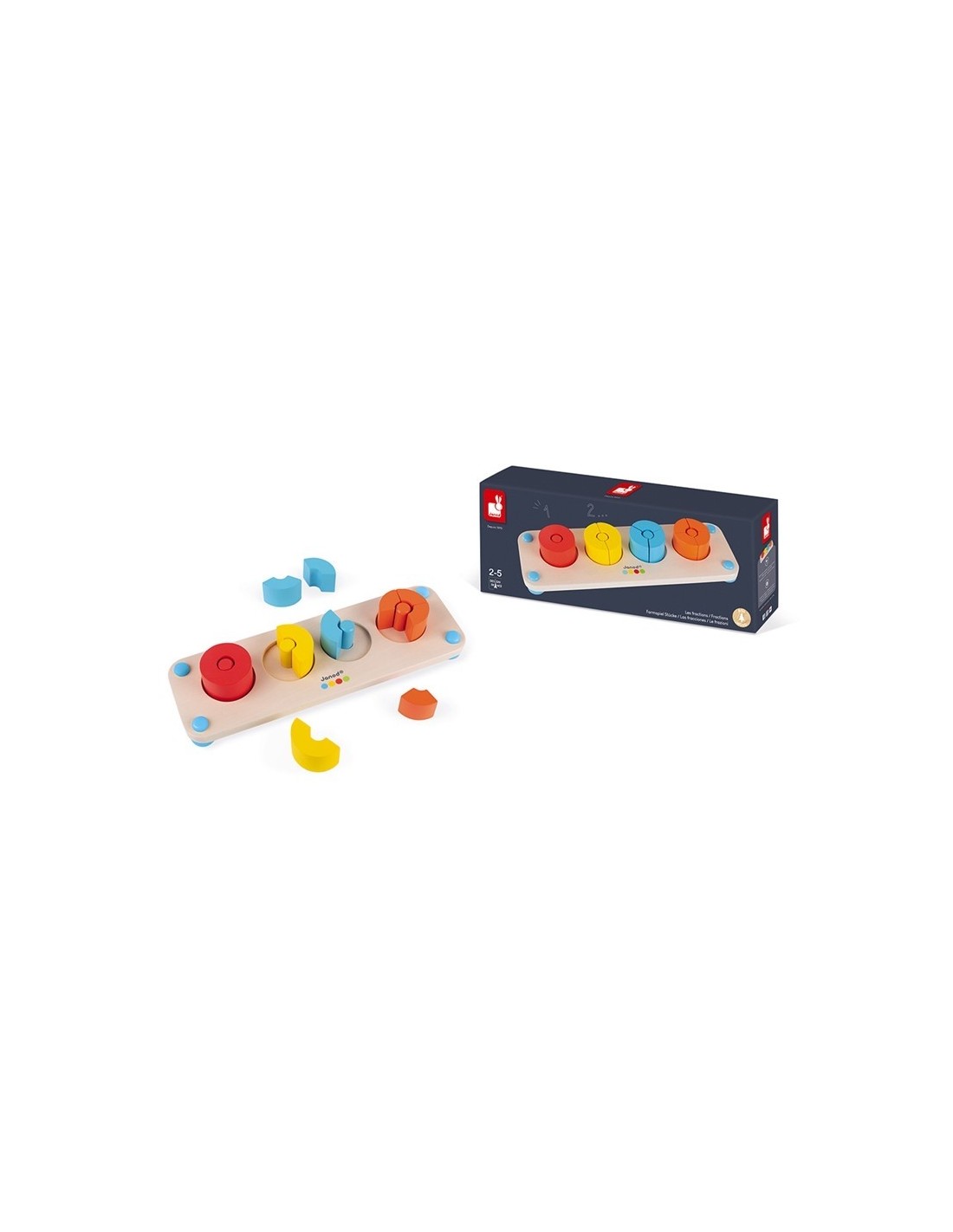 Aquesta joguina de Janod desenvolupa el descobriment de les formes i els colors, aprendre a comptar. Aprendre les fraccions de Janod és una joguina de fusta amb peces pintades amb pintura a l'aigua.