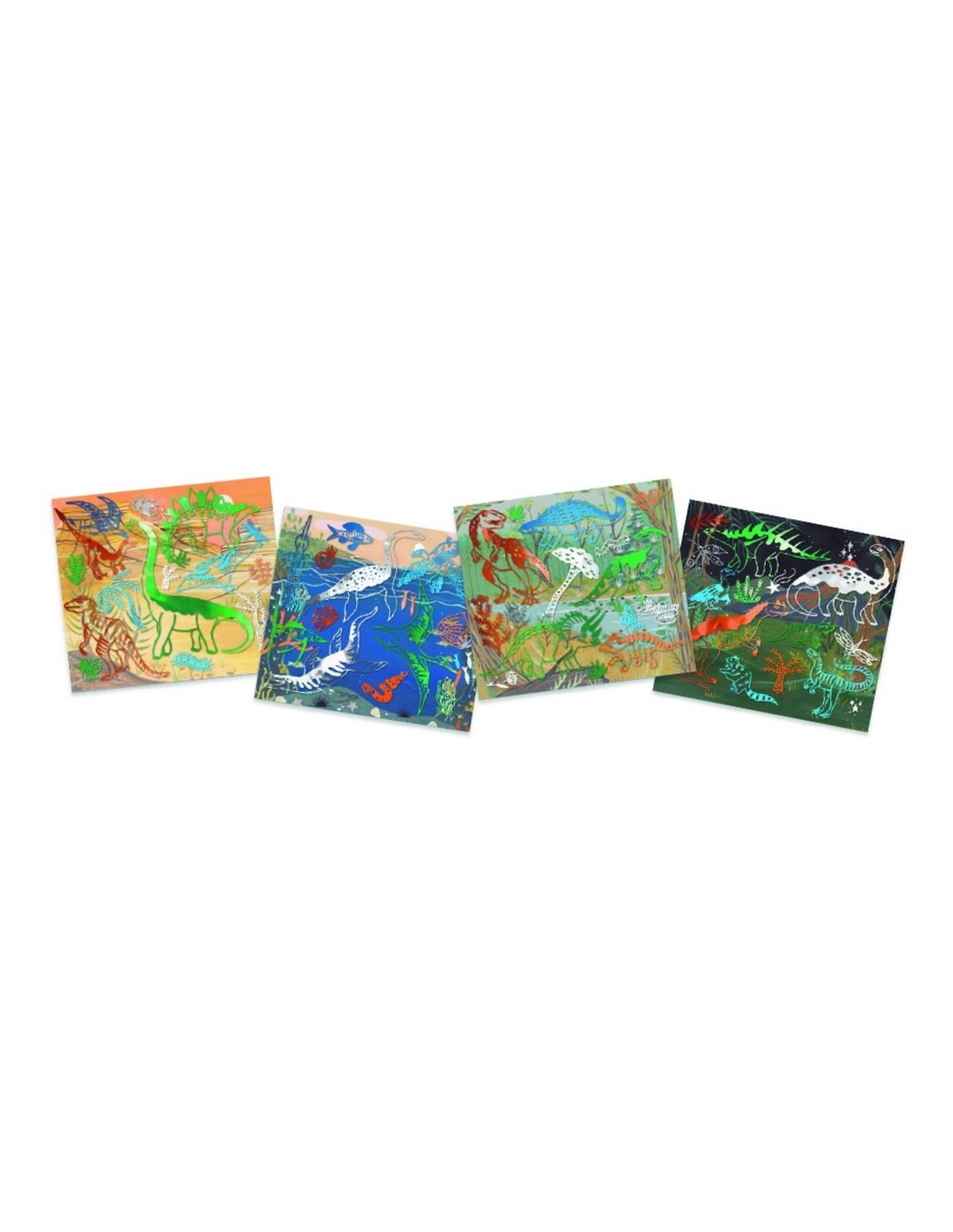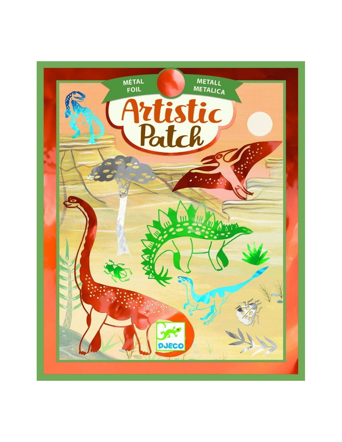Artistic Patch Dinosaures és una altra de les originals manualitats de Djeco en la qual podràs decorar boniques làmines amb motius metal·litzats.