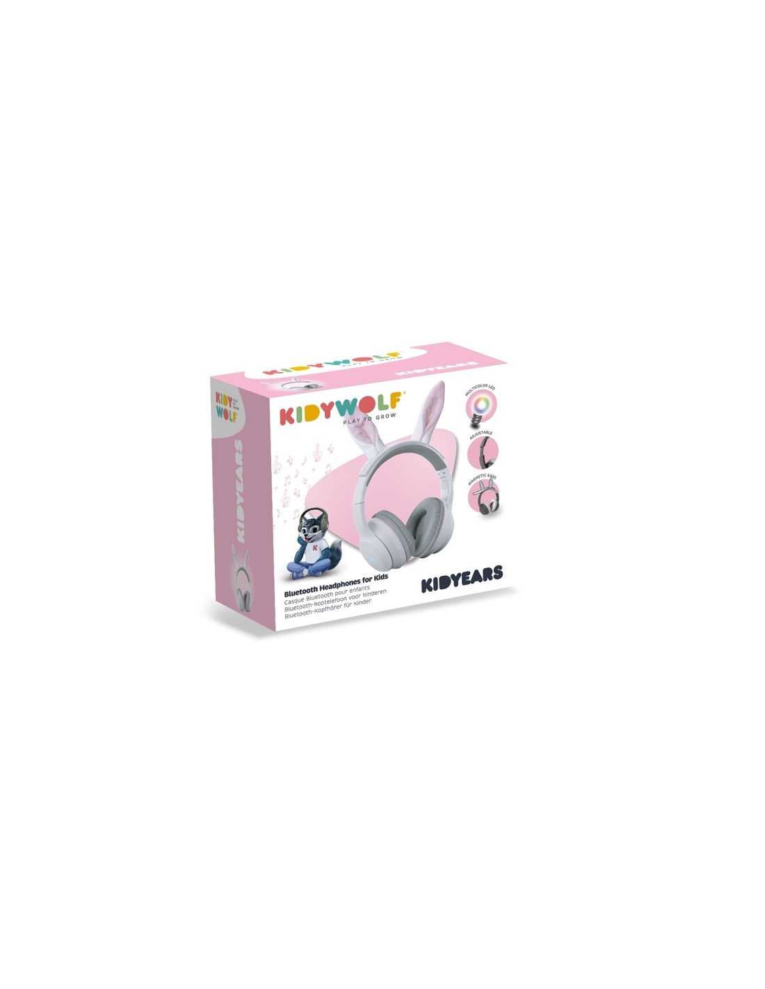Els auriculars KidyEars Bluetooth Conill de Kidywolf transformen cada moment d'escolta en una experiència divertida, suau i segura. Pensats especialment per a nens i nenes a partir de 4 anys, destaquen pel seu encantador disseny amb orelles de conillet magnètiques, un detall que desperta tendresa a l'instant i fa que els petits vulguin portar-los sempre damunt. Aquestes orelles poden posar-se i treure's fàcilment, permetent personalitzar l'accessori segons el dia o l'activitat.