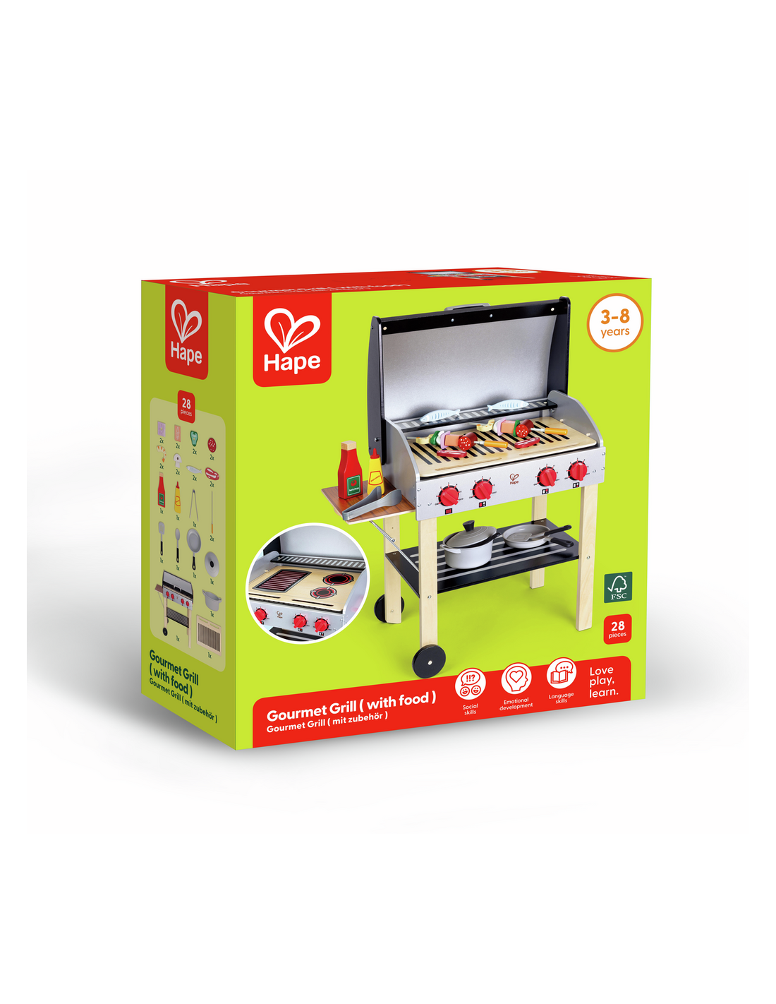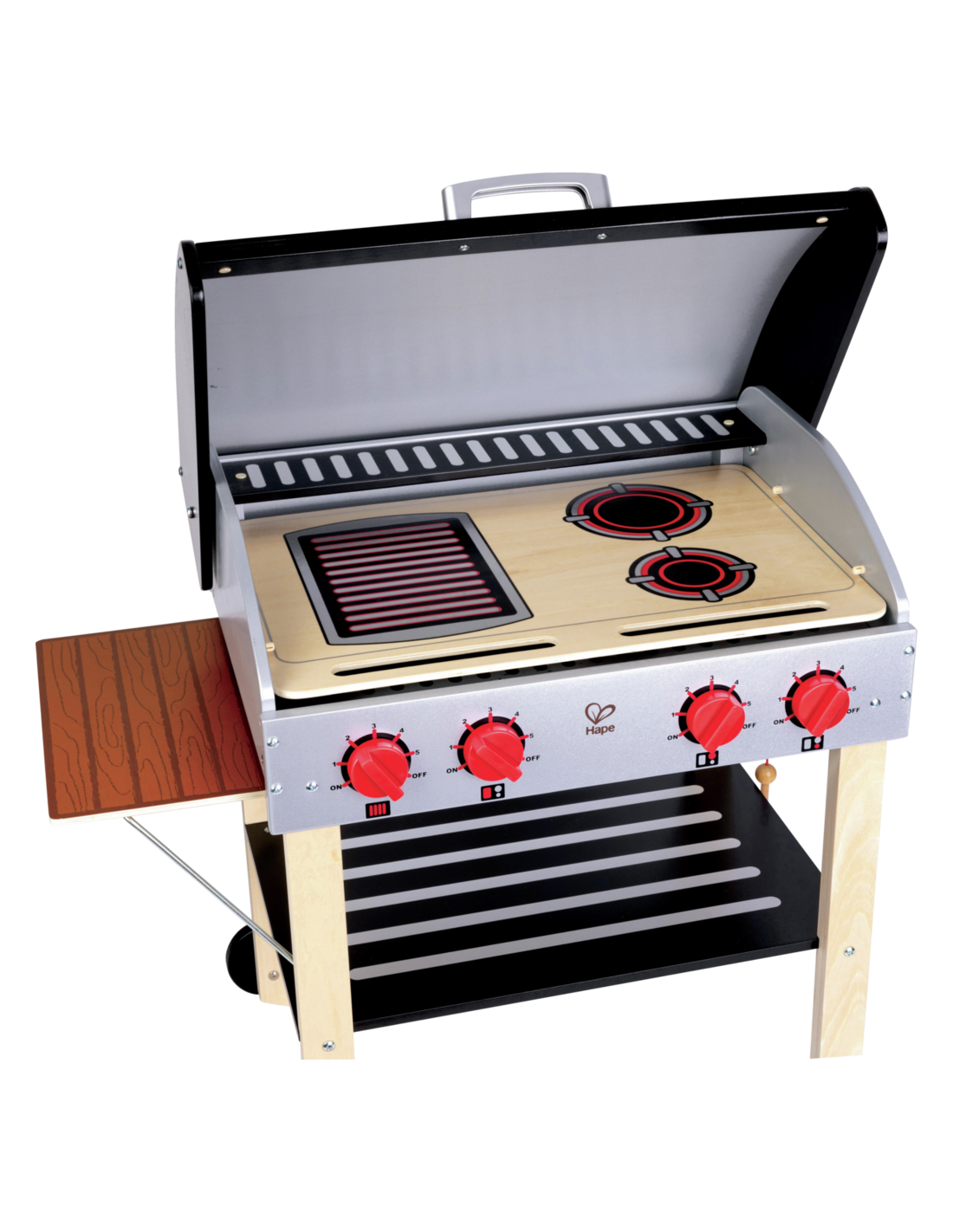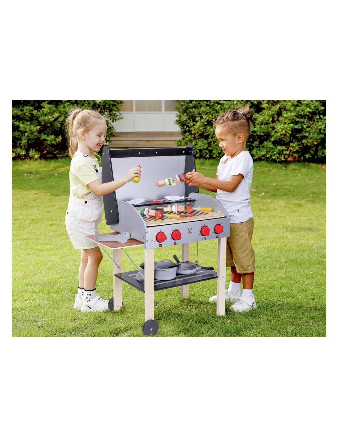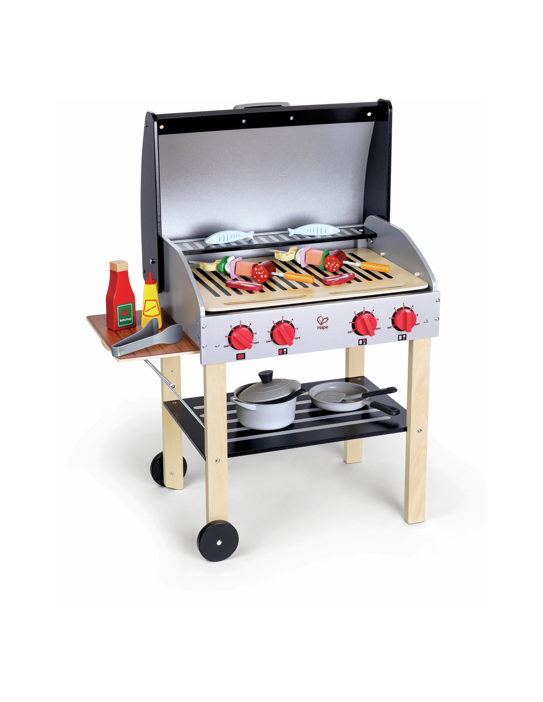 Descobreix la diversió de la cuina a l'aire lliure amb la Barbacoa Gurmet de Hape, un set de joc que combina creativitat, imaginació i aprenentatge pràctic. Amb la seva doble graella, taula lateral plegable, rodes mòbils i tapa que s'obre i tanca, aquest conjunt ofereix una experiència realista perquè els petits xefs explorin el món de la gastronomia de manera segura i entretinguda.
