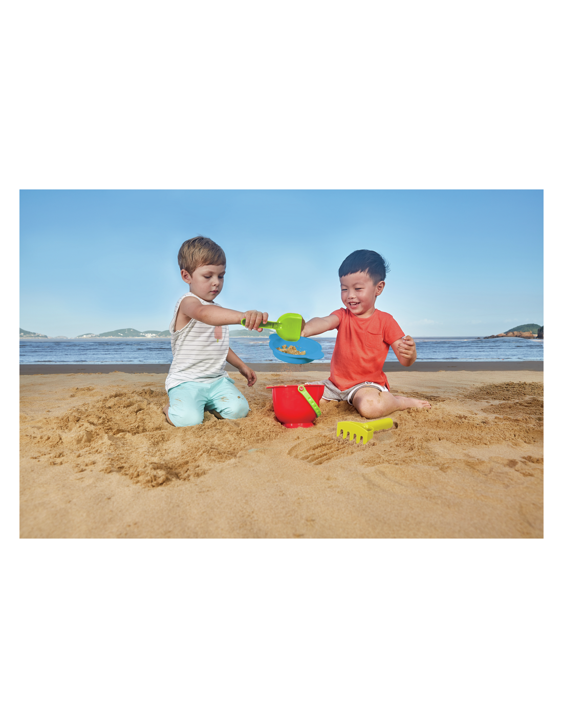 La prestigiosa marca de joguines Hape ens porta aquest kit que, tal com el seu nom indica, inclou els elements bàsics per passar un fantàstic dia de platja. Fabricats amb materials de qualitat i amb colors molt alegres, aquestes joguines estan pensades perquè els més petits puguin jugar a la sorra i passar-s'ho d'allò més bé. El rastell té la part superior descoberta perquè puguin veure com la sorra es va amuntegant, això serveix perquè entenguin millor com funciona i a més els resultarà curiós de veure. La resta de components són els de tota la vida, amb la garantia de la marca Hape.