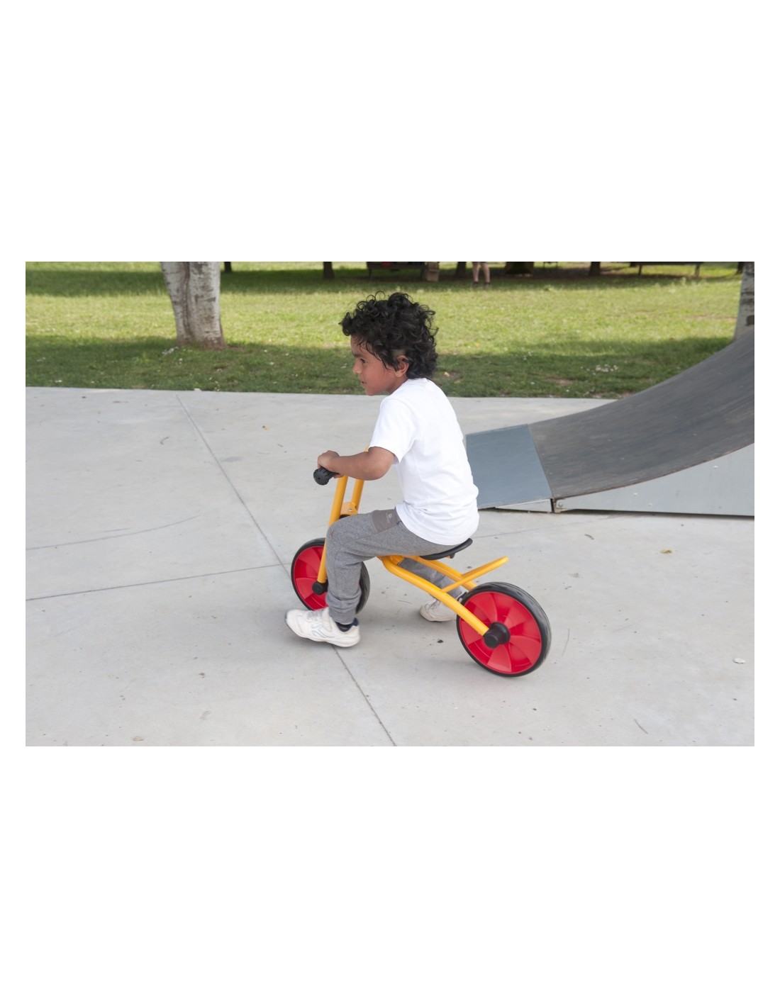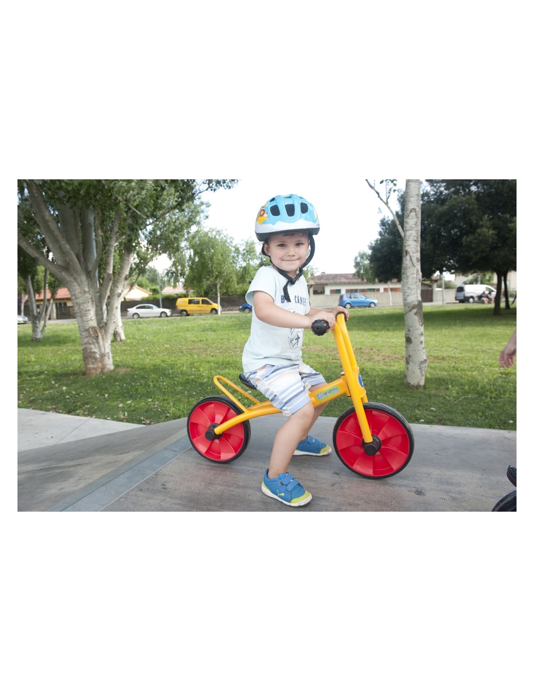 Desenvolupa la teva motricitat grossa amb aquesta fantàstica bicicleta de la marca Tikes by Andreu Toys. Es tracta d'una bicicleta per a nens de 3 a 6 anys i està pensada tant per l'ús escolar com pel particular. La pintura del quadre, la forquilla i del manillar és molt resistent contra la corrosió i els cops. El seient anatòmic està fet de polietilè, així que serà resistent a la intempèrie. Això fa que tot i que el tricicle estigui al pati, aguantarà tot tipus de temps. En el centre de l'estructura té un tub d'acer preparat per a un ús intensiu. Si ens fixem en les rodes, no té radis, així que resistirà la força de l'abrasió. Oferim servei de recanvis i 2 anys de garantia del quadre i la forquilla.