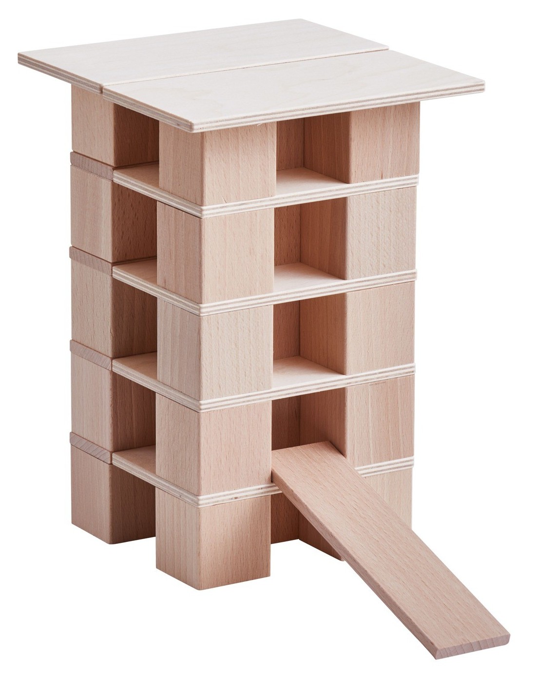 Els petits mestres d'obra exploraran, formaran files i apilaran els blocs. Més endavant dissenyaran patrons més complexos i els seus primers edificis. Els panells i llistons ajuden a salvar obstacles i construir en inclinat i en pisos. El set de blocs de construcció permet una construcció integral i un aprenentatge creatiu.