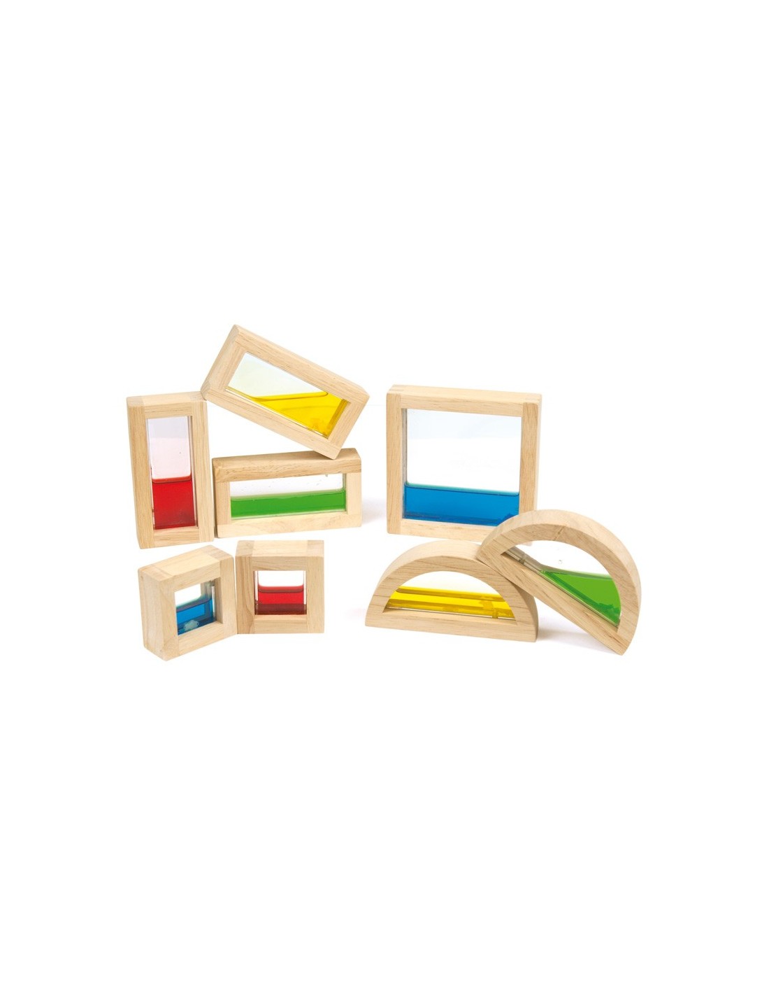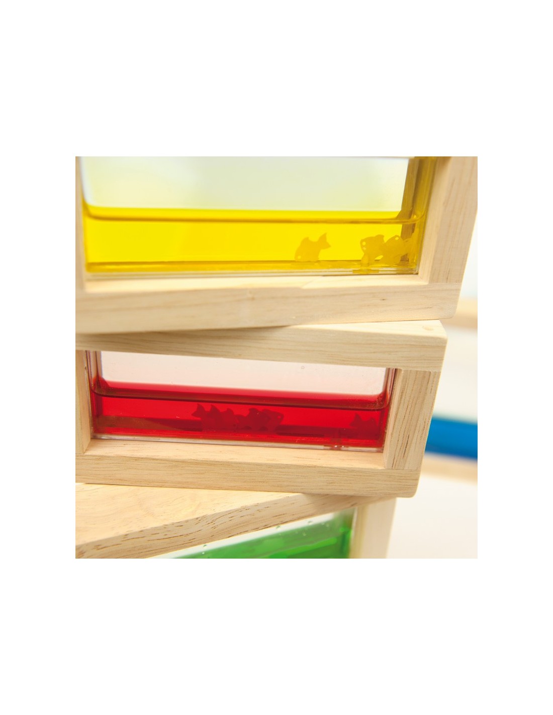 Et presentem aquests blocs de fusta sensorials amb líquid de colors i pececillos en el seu interior. Ideal per a taules de llum, inclou 8 blocs de fusta sensorials diferents. La mesura del quadrat gran és de 14 x 14 x 3 centímetres, per la qual cosa farà senzilla la tasca de manejar aquesta joguina fins als més petits de la casa.
