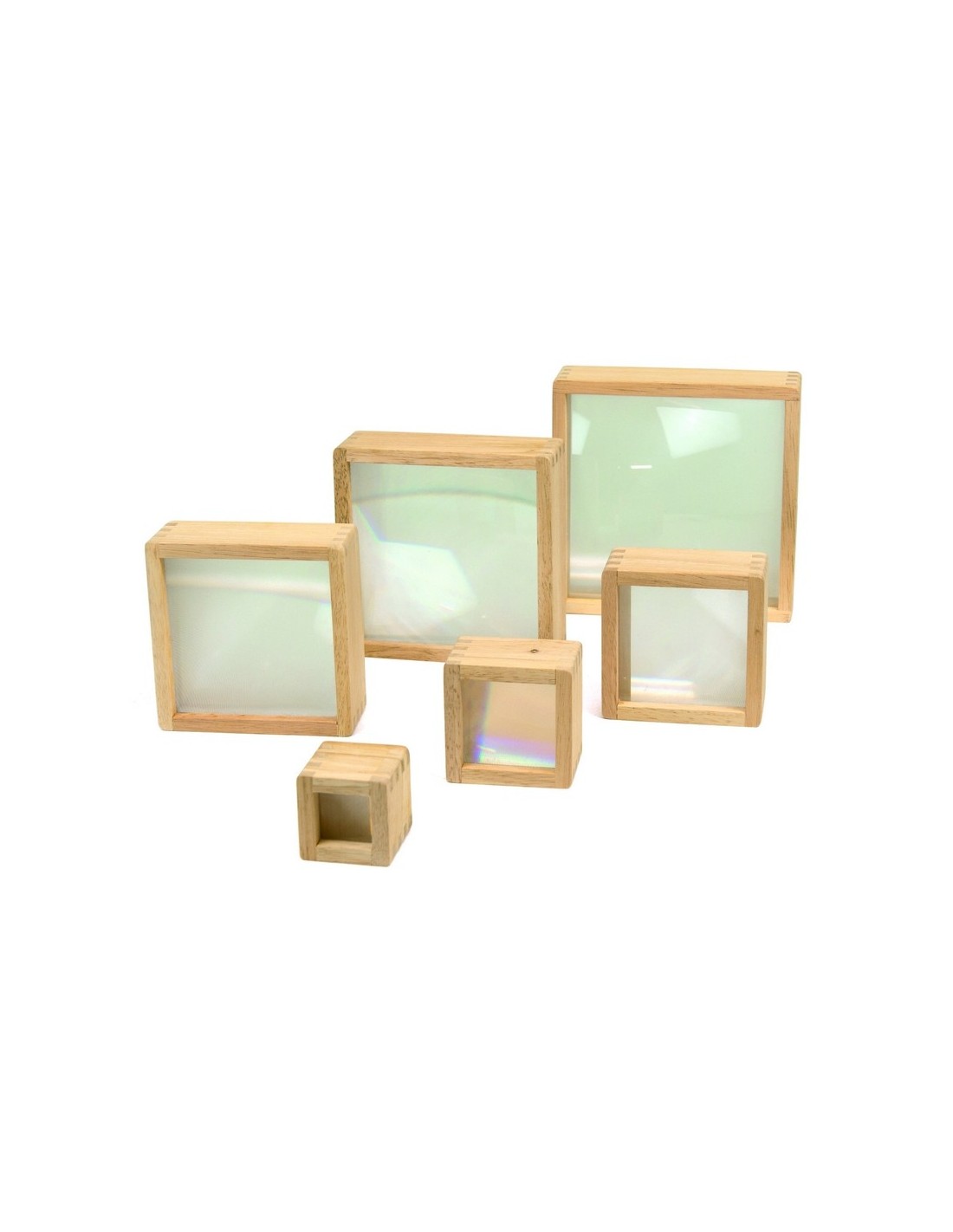 Et presentem aquests blocs de fusta sensorials amb lupa. Ideal per a observar elements naturals al vostre voltant, inclou 6 blocs de fusta. La mesura del quadrat gran és de 18 x 18 x 5 centímetres, per la qual cosa farà senzilla la tasca de manejar aquesta joguina fins als més petits de la casa.