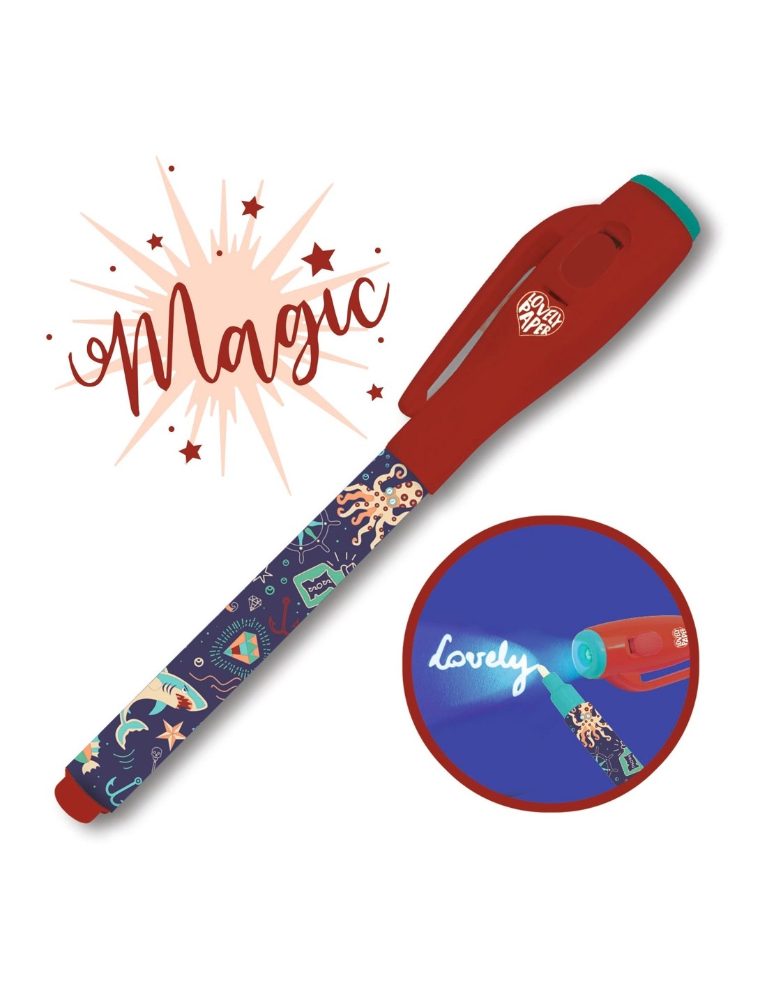 Amb un disseny encantador que presenta il·lustracions del món marí, aquest bolígraf de tinta invisible és la clau per mantenir els teus secrets fora de perill. Sigui per enviar missatges misteriosos o per emmagatzemar contrasenyes importants, el Bolígraf màgic Steve afegeix un toc de màgia a l'escriptura quotidiana.