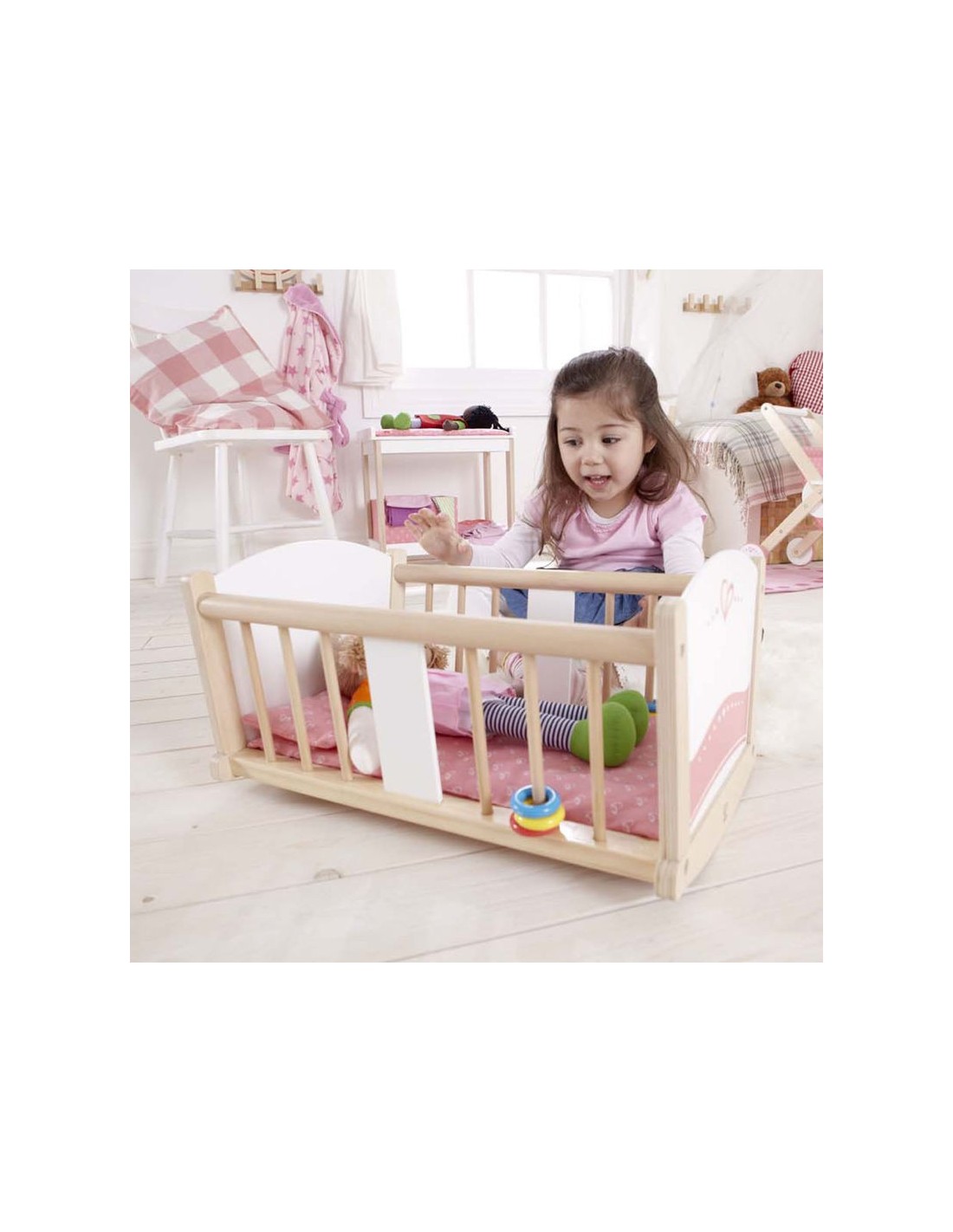 Si vols que la teva nina s'adormi plàcidament, no hi ha res millor que aquest Bressol Balancí per a Nines de la marca Hape. Està fet de fusta robusta i està pintat amb preciosos colors. Al ser tan bonic, segur que queda fantàstic a la teva habitació. No creus? La part inferior del bressol és arrodonida, cosa que et permetrà balancejar a la teva nina d'un cantó a l'altre perquè es vagi adormint a poc a poc. El bressol inclou un còmode llitet i un coixí perquè la teva nina estigui el millor possible. Tot és poc per ella!
