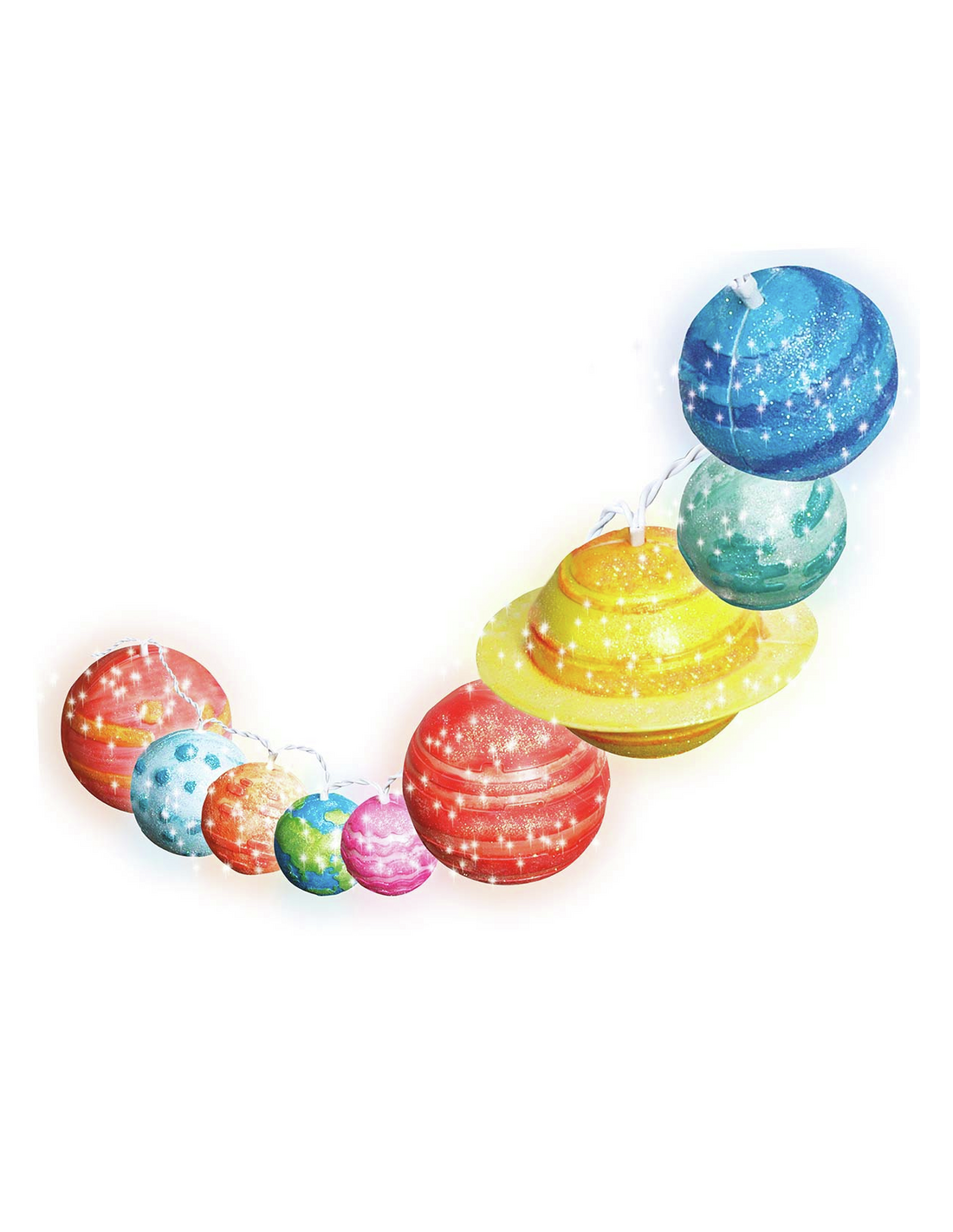 Explora totes les meravelles de l'espai exterior amb aquest kit de llums de cadena del sistema solar. Munta i pinta el teu propi planetari que s'il·lumina en la foscor.