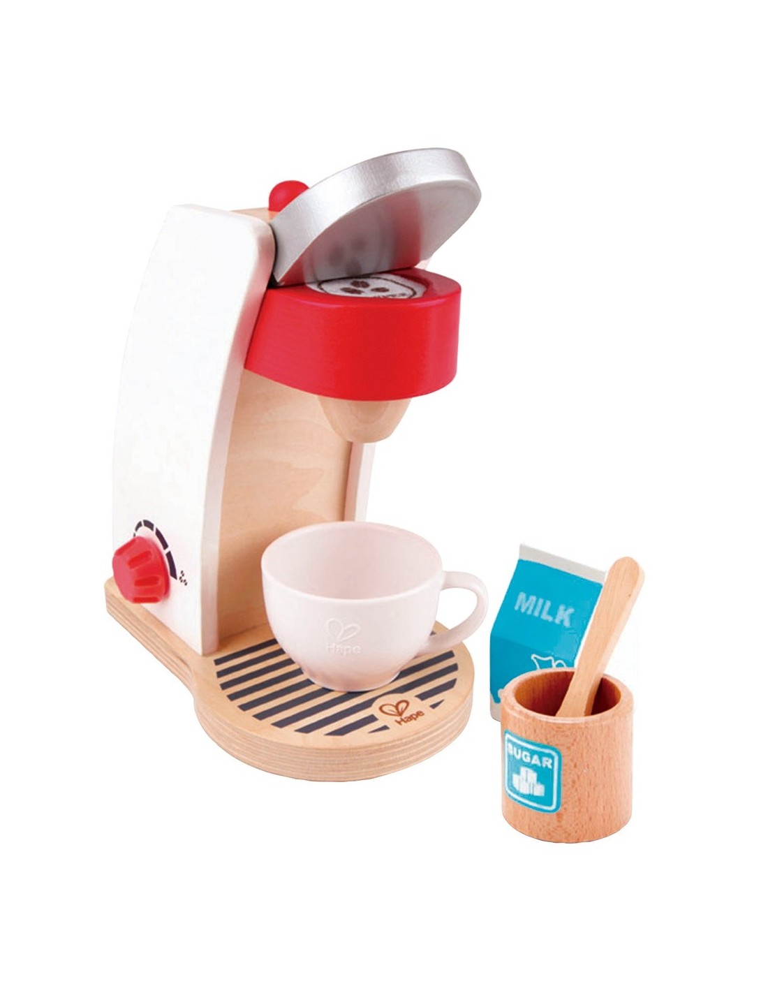 Amb aquesta màquina monotassa, el joc imaginatiu serà encara més divertit. Com prens el cafè? Amb llet i sucre? Està fabricada amb fusta natural sostenible i porta tots els elements necessaris per començar a jugar. Aspectes que potencia: Imaginació i creativitat: Anima el joc imitatiu i imaginatiu; estimula la capacitat narrativa, el joc de rol i la creativitat. Habilitats socials: Conceptes bàsics de la comunicació, cooperació i col·laboració; estimulació de la confiança, l'amistat i el desenvolupament de la parla.