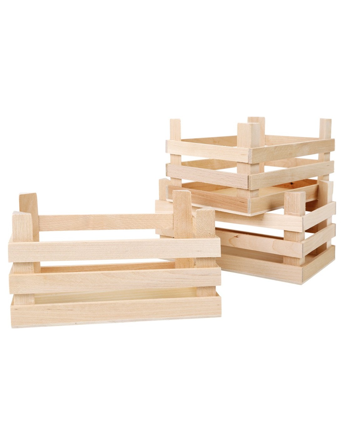 Ja sigui com a caixa decorativa o per a emmagatzemar fruites i verdures, aquestes grans caixes de fusta en un joc de 3 són tot terreny. Les caixes són especialment adequades per a la botiga o el mercat.