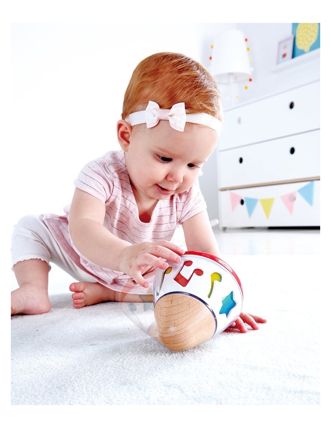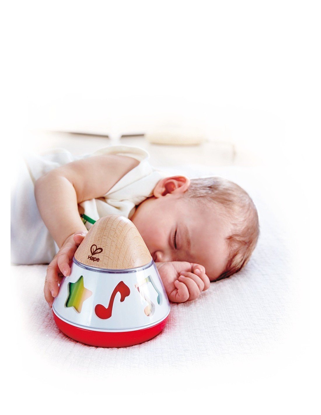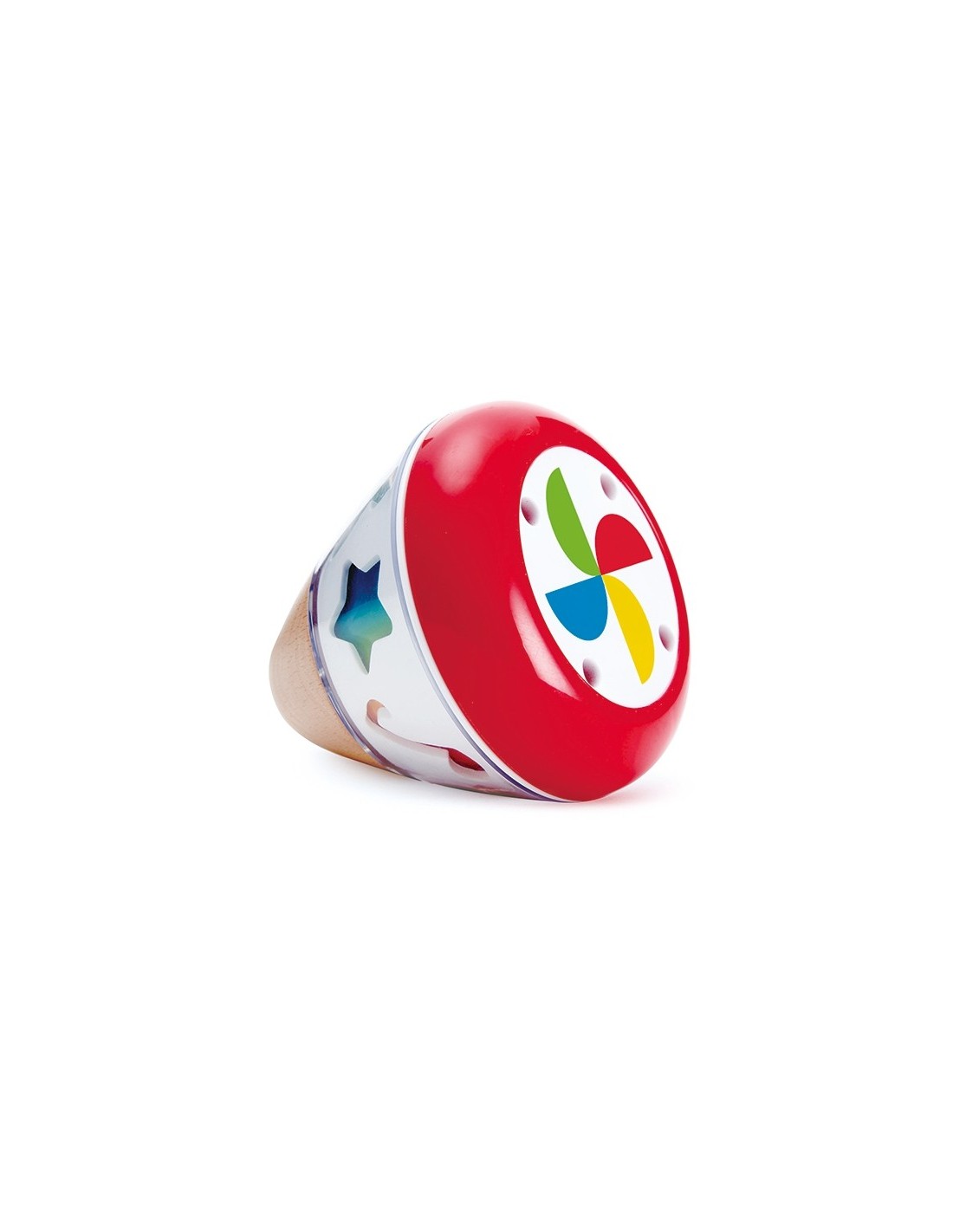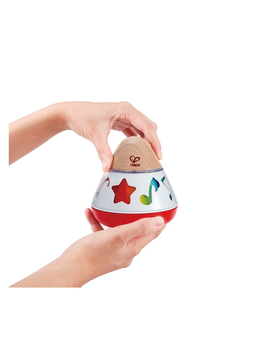 La caixa de música giratòria Hape ve amb colors brillants i fusta natural apta per a nadons des del naixement. Les formes giren sense necessitat de piles ja que el gir es realitza gràcies a un sistema mecànic i la música que produeix és suau i ajuda a calmar el nadó. Pot girar tant sobre la seva base com de forma lateral. Està fabricada de forma sostenible i compleix amb tots els estàndards internacionals de seguretat i qualitat. Una joguina ideal per encoratjar els més petits a explorar i experimentar el món de la música de forma divertida i relaxada.