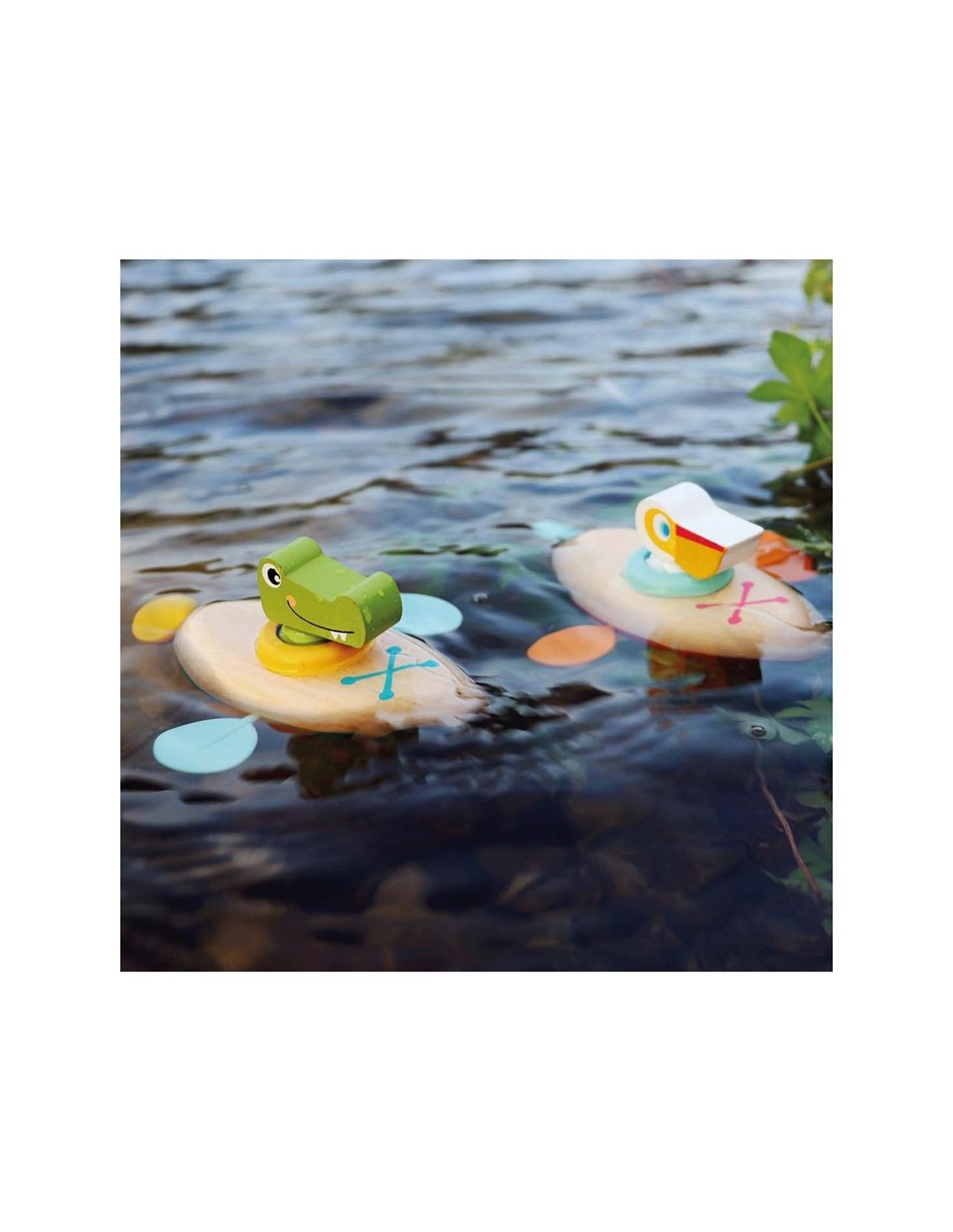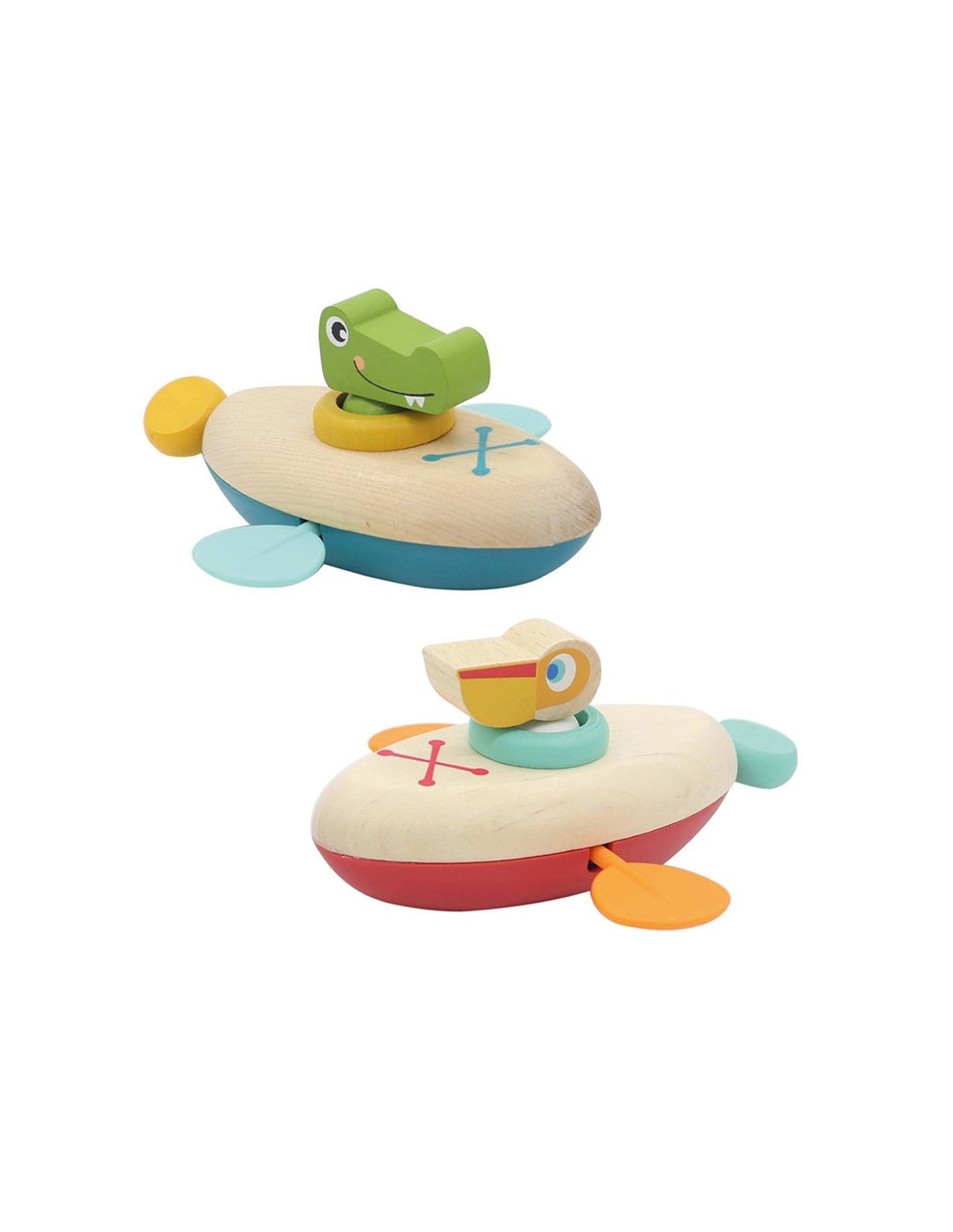 Les joguines aquàtiques de fusta són l'alternativa de joguina de bany sostenible als animals de joguina de plàstic i goma! Res més s'interposarà en el camí de la diversió dels jocs de rol en alta mar. Mentre juguen, els petits aprendran el principi de causa i efecte del mecanisme de corda. Petit i manejable, aquesta bufona canoa d'aigua mecànica amb animal cap fàcilment en qualsevol motxilla de natació!