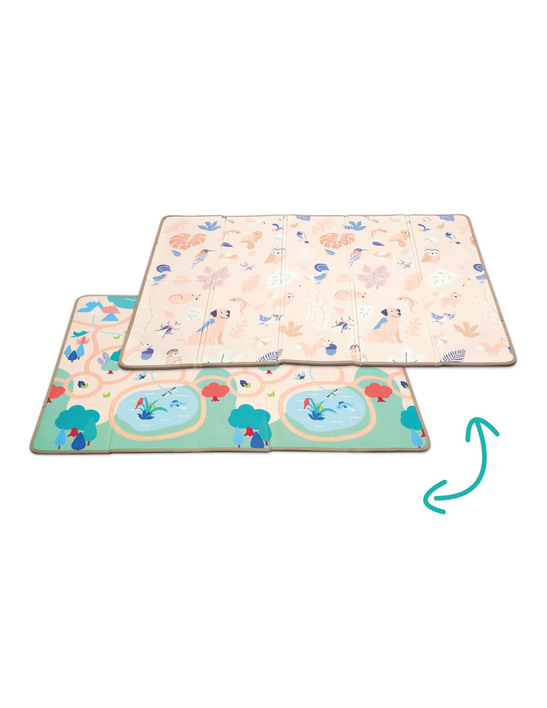 Dissenyada per a adaptar-se a diferents edats i etapes de desenvolupament, aquesta catifa compta amb dues cares reversibles que ofereixen diferents opcions de joc. D'una banda, presenta un disseny en tons pastel, que resulta atractiu i combina perfectament amb qualsevol mena de decoració. Aquest costat és ideal per als primers mesos, quan els bebès comencen a descobrir formes i colors. En l'altre costat, es troba un divertit circuit de cotxes que estimularà la imaginació dels nens grans, oferint una base perfecta per a jocs de rol i aventures creatives.