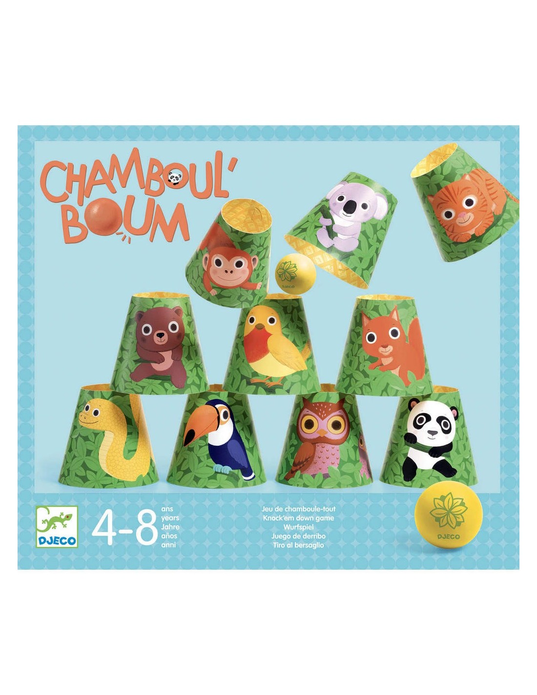 De la mà de la marca francesa Djeco et presentem el joc Chamboul Boum, un joc d'habilitat i punteria amb 10 divertits animals per a apuntar i derrocar amb la bola de plàstic suau. Aquest joc estimularà el desenvolupament de les habilitats dels nens, com són l'habilitat manual, punteria, paciència, coordinació mà i ull… Un gran clàssic per a mantenir divertits a nens i nenes de 4 a 8 anys.