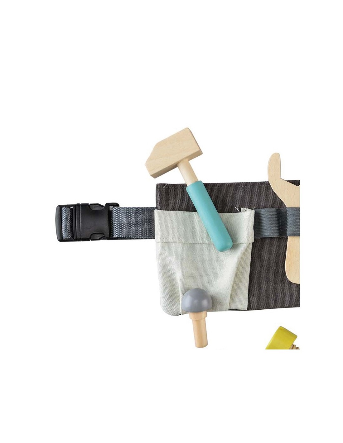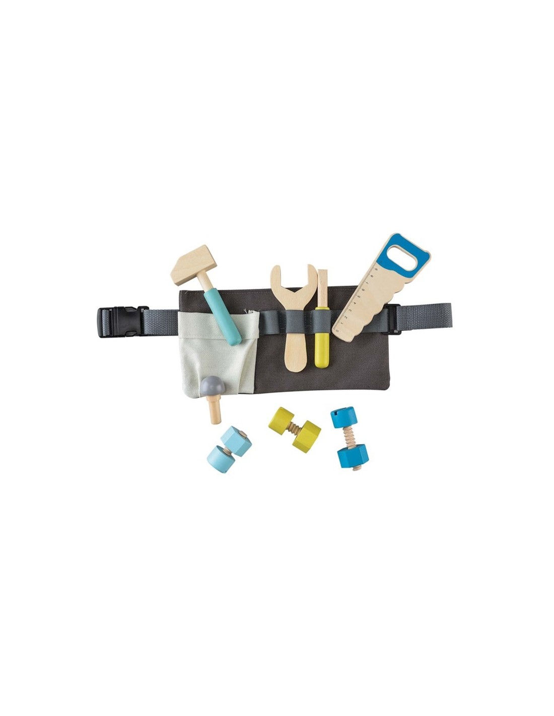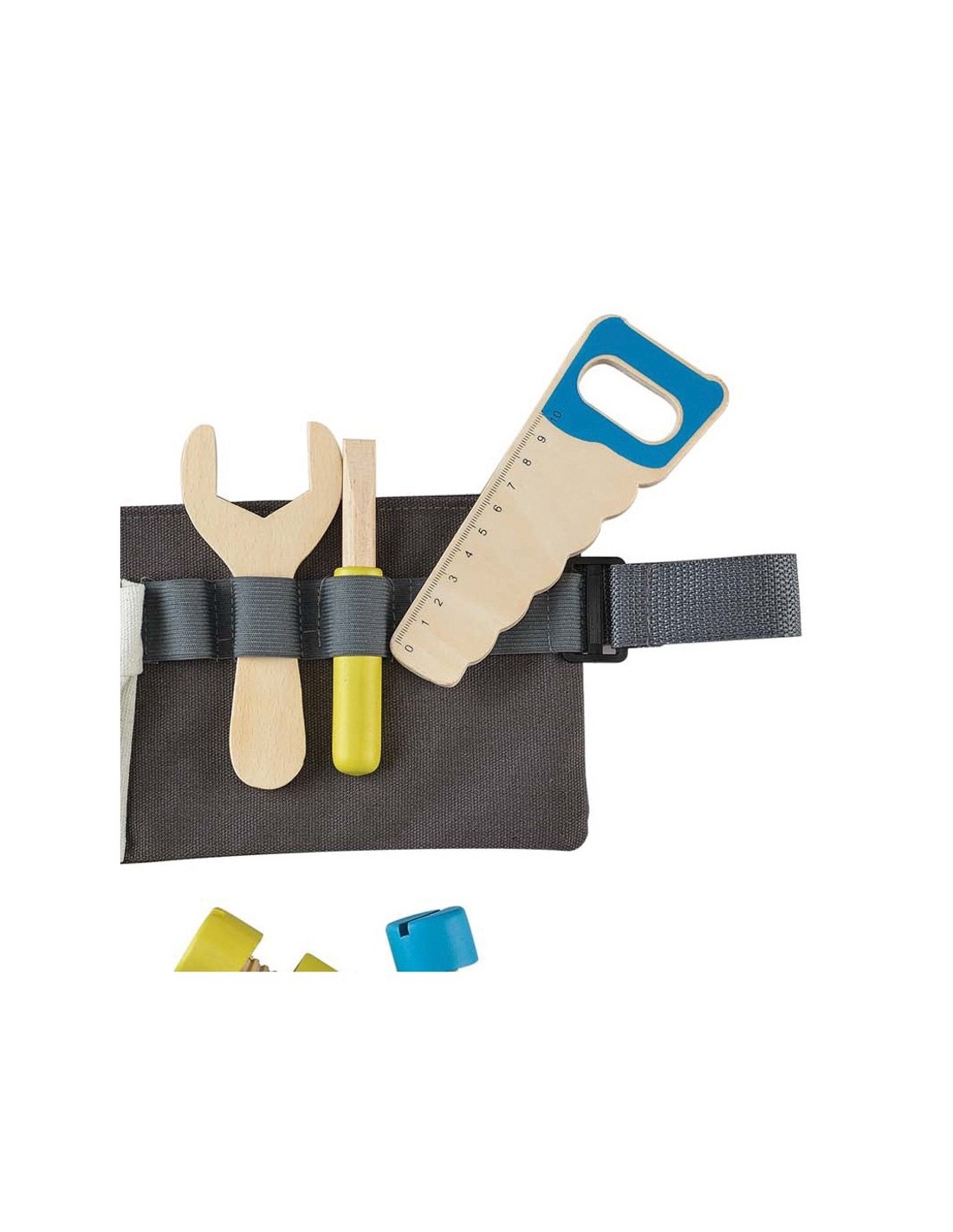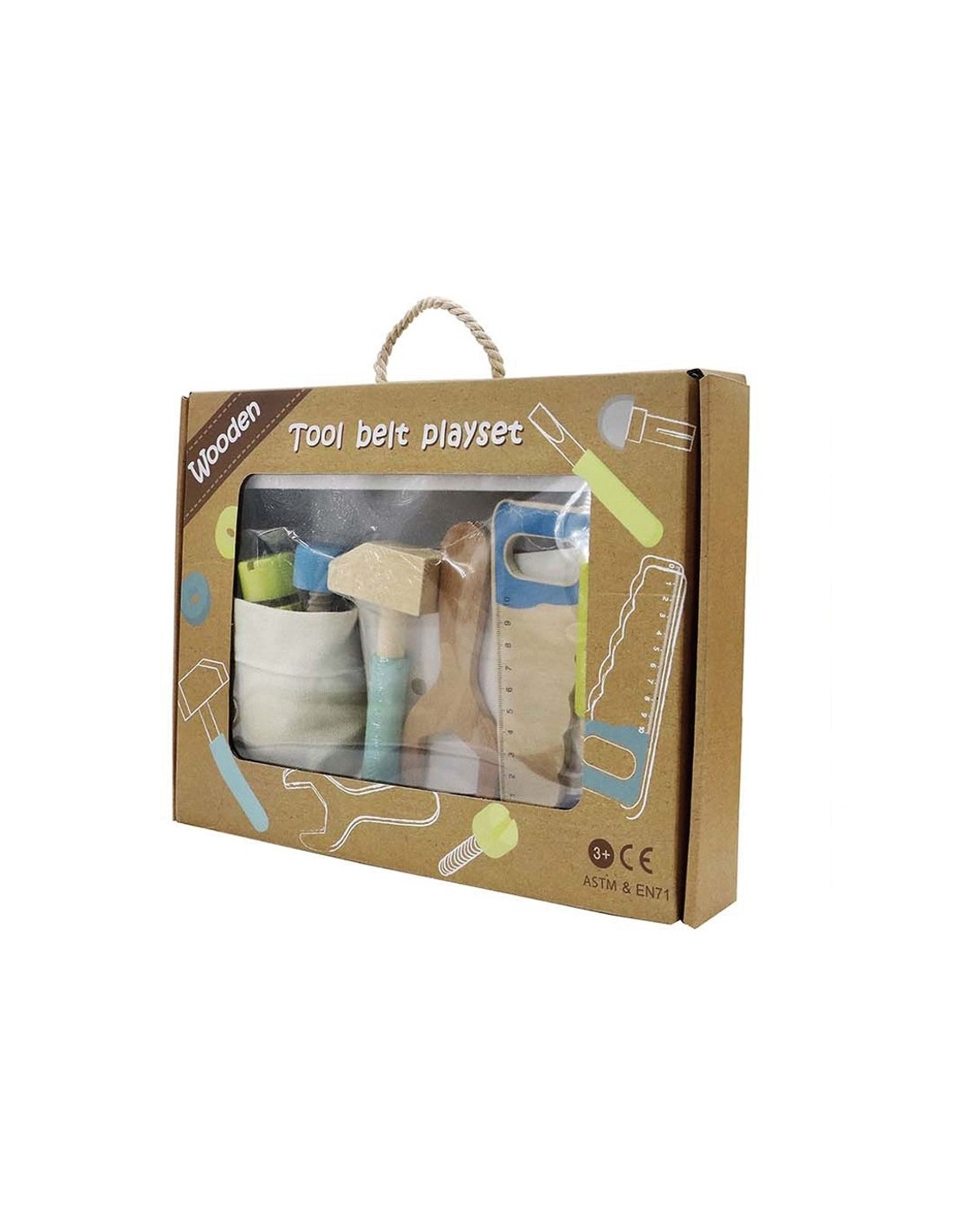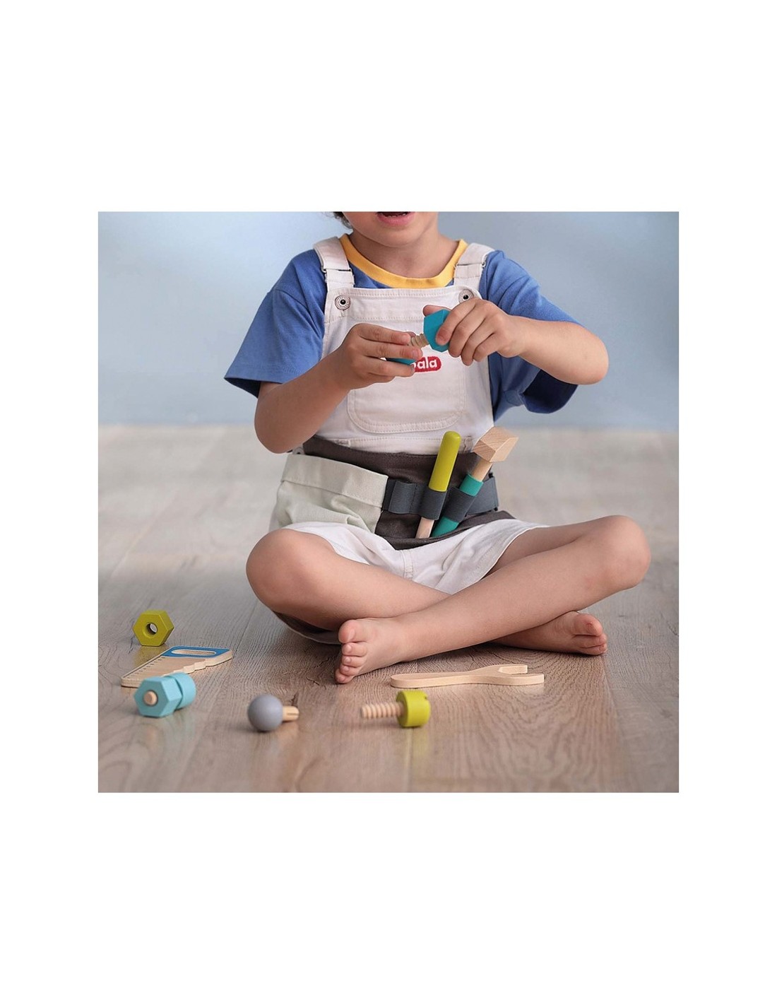 Serra de fusta, clau anglesa, tornavís i rosques i caragols. És un somni! Ara els nens poden treballar al costat de papà i mamà i passar temps de qualitat junts. Aquest cinturó d'eines de fusta ajuda amb les habilitats de comunicació, promou la coordinació de mans i ulls.