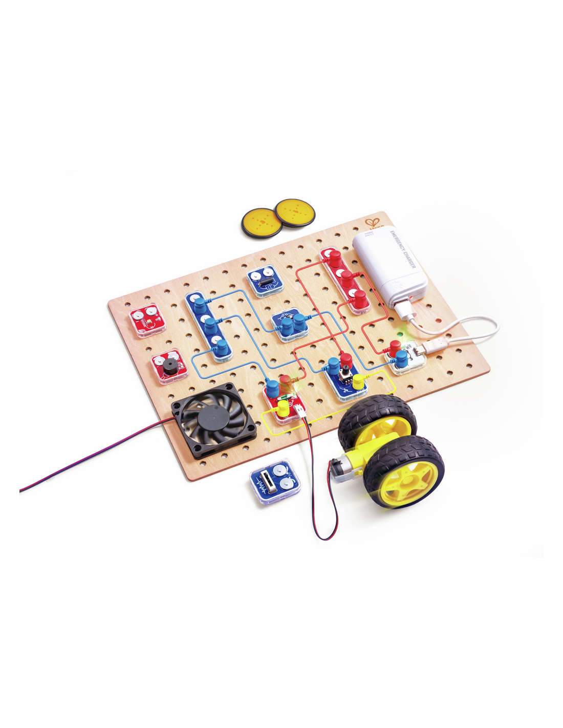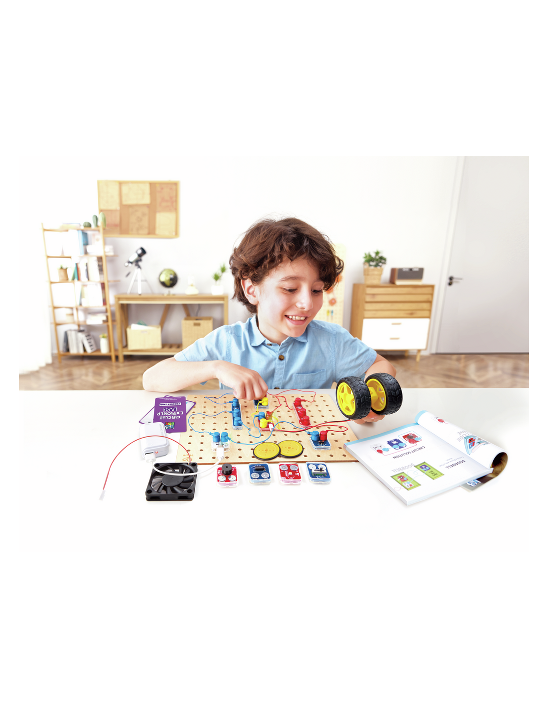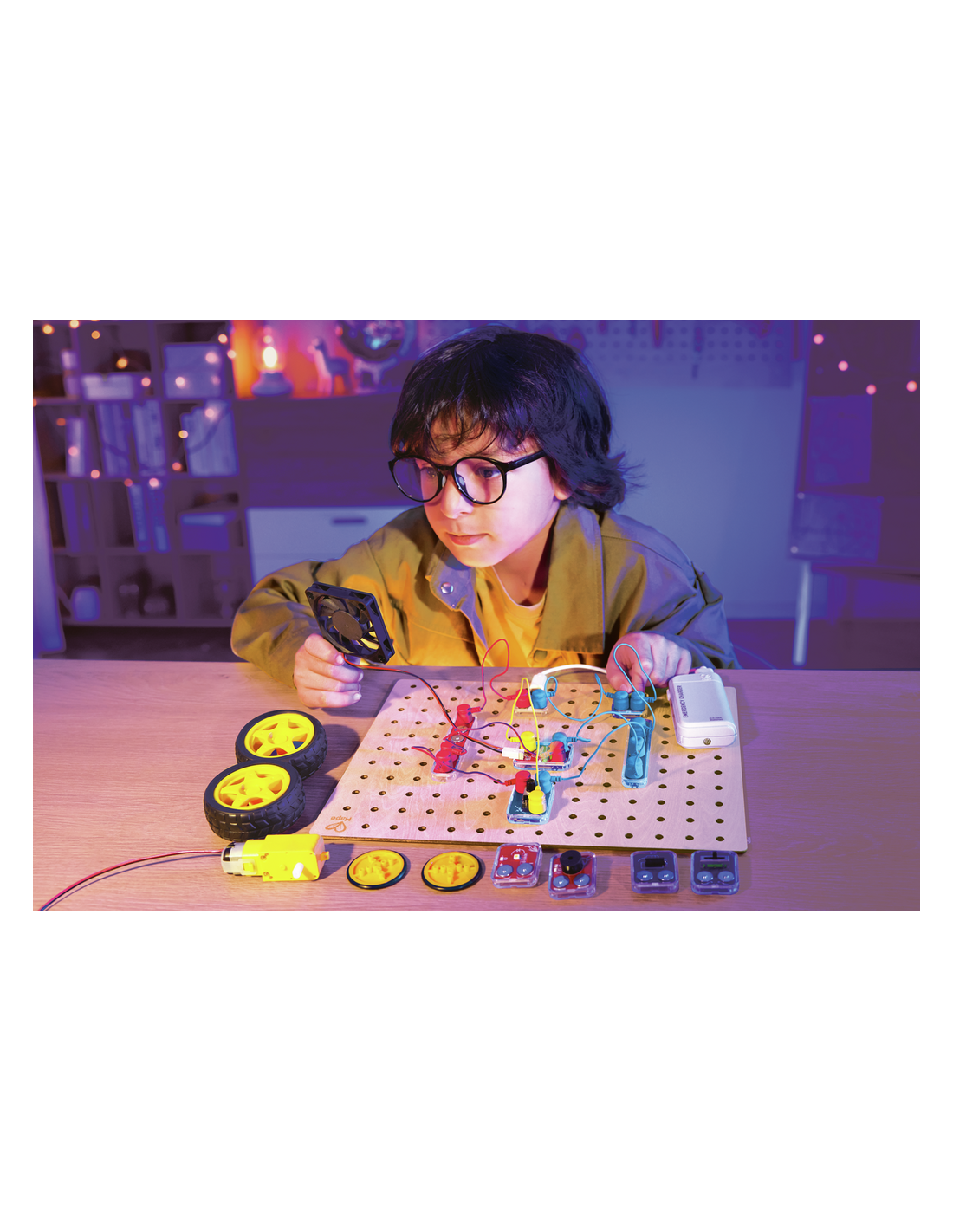 El kit inclou 10 blocs electrònics intel·ligents i un total de 39 peces que poden combinar-se de múltiples maneres per a crear més de 90 circuits diferents. Gràcies a aquestes possibilitats, els petits inventors poden aprendre conceptes essencials com la conducció elèctrica, la connexió en sèrie i paral·lel, el flux d'energia o el funcionament de components bàsics com a interruptors i llums.