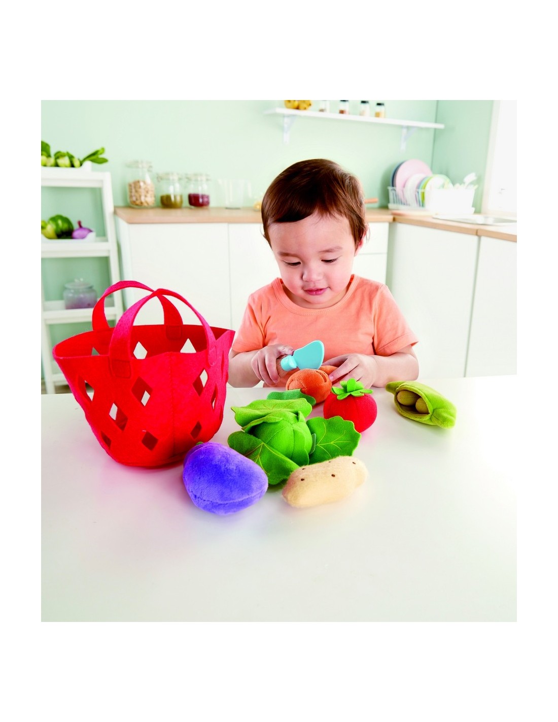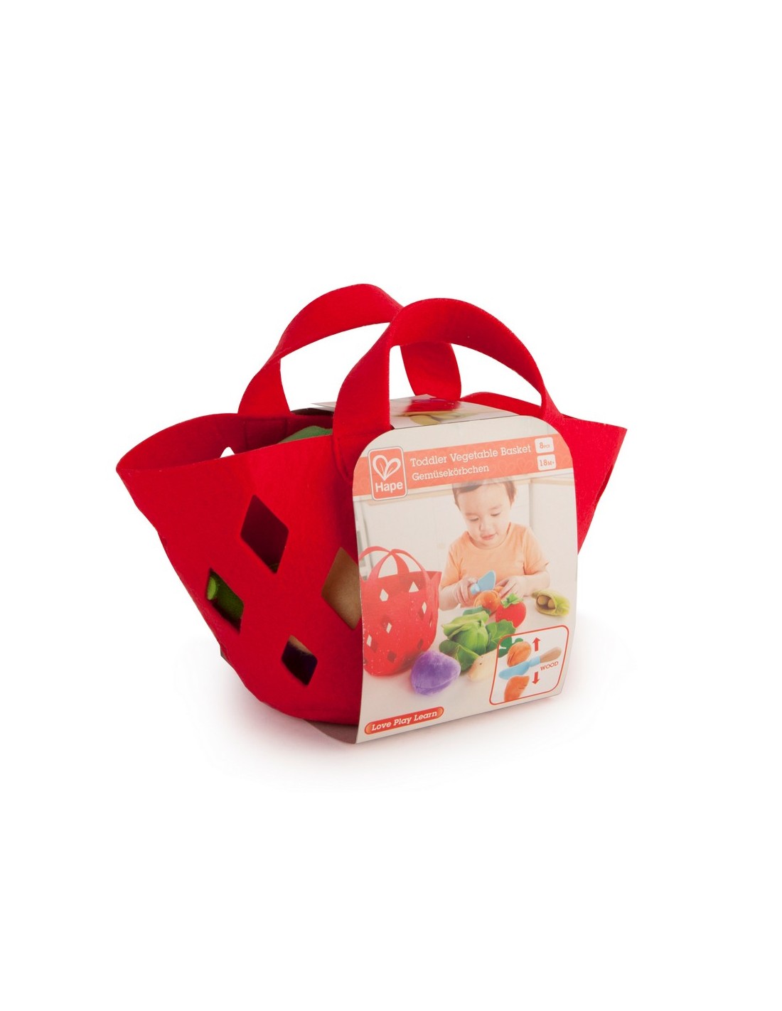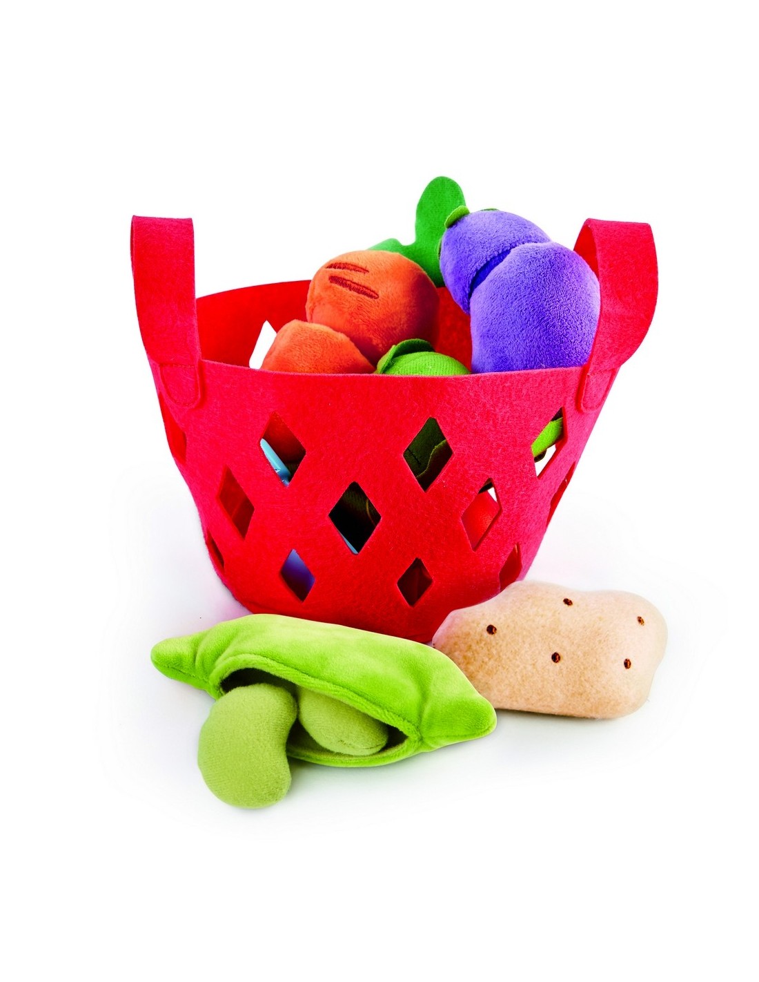 Aquests vegetals són una monada! Ara els nens podran fer la compra i preparar grans delícies amb aquests bonics vegetals de la marca Hape. Aquesta cistella vermella de feltre suau amb sis peces conté alguna de les verduritas favorites dels nens. Podran treure els pèsols de la beina, pelar les fulles de cabdell i tallar la pastanaga i l'albergínia per la meitat i compartir-ho amb els seus amics!