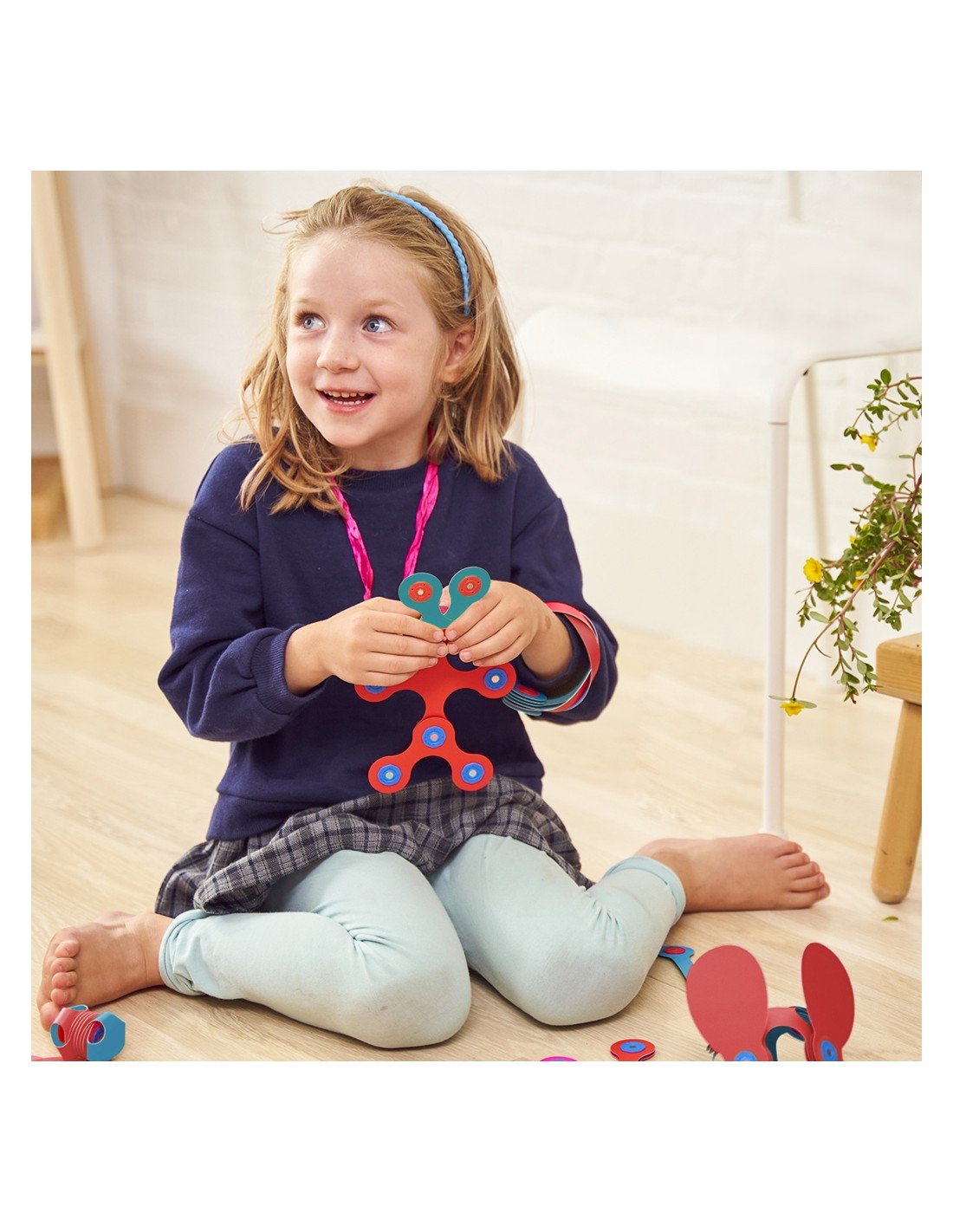 Les peces estan fetes de material durador i flexible, fàcils de netejar i resistents a l'ús diari. El seu disseny magnètic, segur i multisensorial ofereix una experiència tàctil que estimula l'aprenentatge mentre es diverteixen. Els nens poden experimentar, encaixar, doblegar i combinar formes, desenvolupant la seva imaginació i habilitats espacials a través de la construcció lliure i sense límits. Cada estructura creada enforteix la coordinació ull-mà i l'habilitat manual, promovent la paciència, la concentració i la resolució de problemes de manera natural.