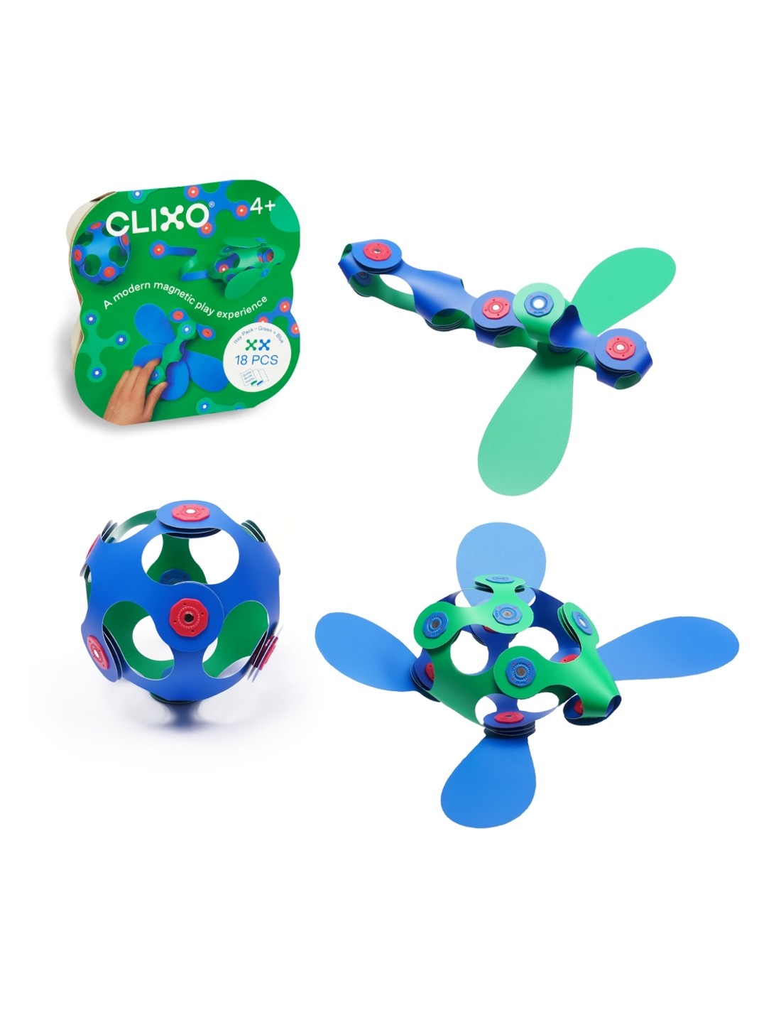 El Clixo Itsy Pack Verd i Blau és una introducció perfecta a l'univers creatiu de Clixo, un sistema de construcció innovador que combina peces flexibles amb potents imants per a crear figures en 2D i 3D de manera intuïtiva. Aquest joc de 18 peces en 6 formes úniques convida els nens a explorar, experimentar i construir sense límits, transformant simples planxes magnètiques en estructures sorprenents. El seu disseny lleuger i compacte està pensat per a acompanyar a les famílies allà on vagin, convertint-lo en una joguina ideal per a viatges, esperes o qualsevol moment de joc improvisat.