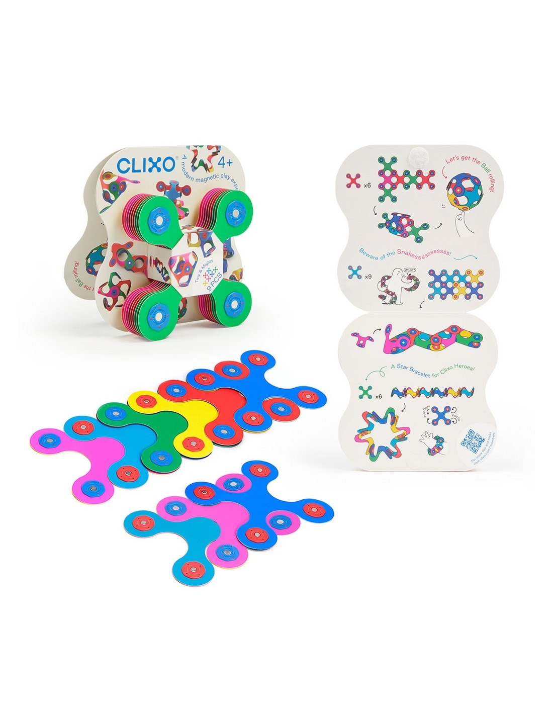 Descobreix el Clixo Tiny & Mighty Minipack, un joc de construcció amb 9 peces flexibles i magnètiques que permet als nens donar curs a la seva creativitat i imaginació. Cada peça compta amb forts imants integrats en els extrems, la qual cosa possibilita corbar-les, donar-los forma i unir-les entre si o amb altres peces per a crear estructures úniques en 2D i 3D.