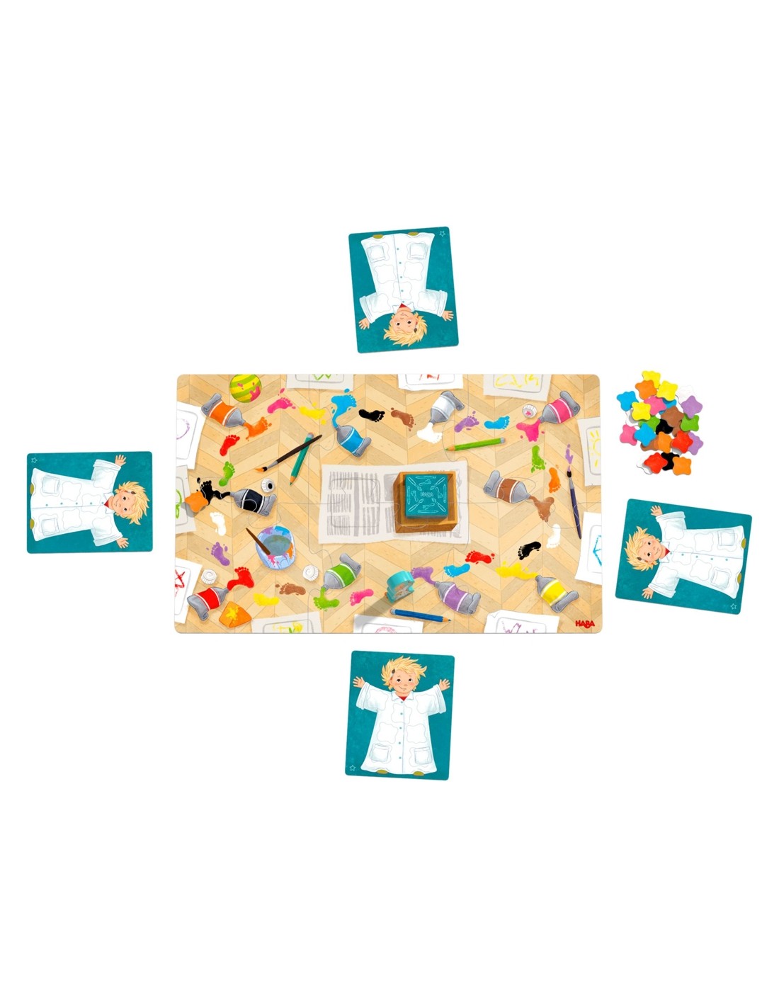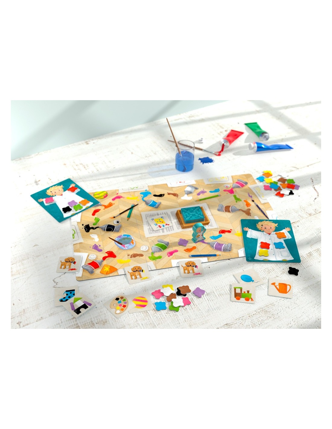 Klecks pinta uns magnífics quadres de colors. Però, per a això, el nostre petit artista necessita taques de pintura pintures. Els jugadors/as avancen amb Klecks de gom a gom destapant les cartes i esmentant els colors. D'aquesta manera, acumulen moltes taques de record. Però, compte! A Toffy, el gos de Klecks, li encanta emportar-se els pinzells. Gana qui primer aconsegueixi col·locar set taques en la seva bata!