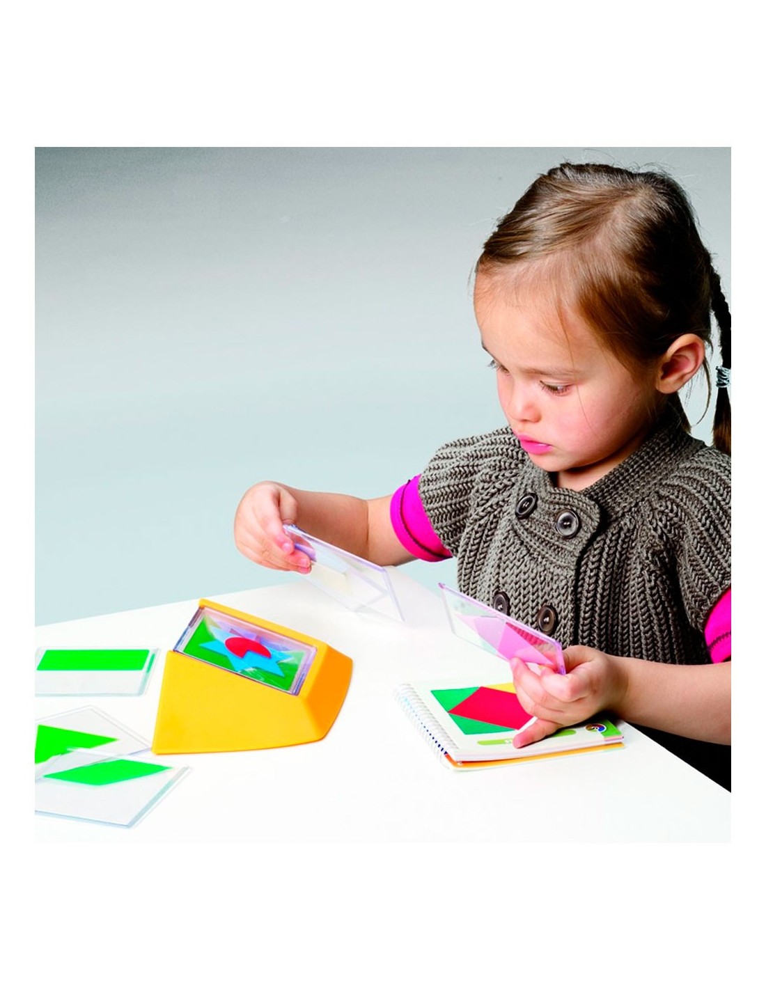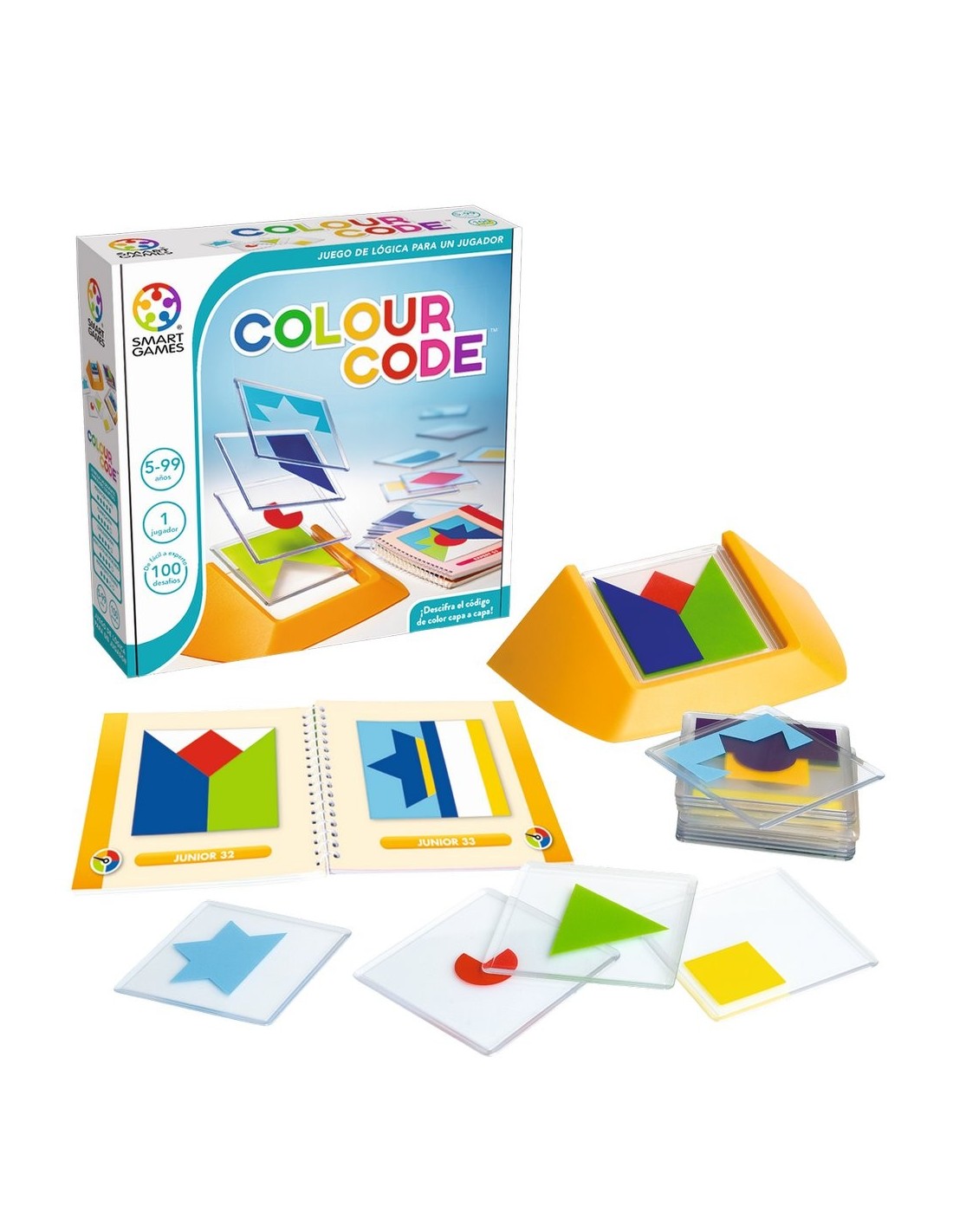Colour Code, de Smart Games, és un joc que desenvolupa la capacitat lògica i el raonament espacial. Inclou fins a 100 reptes de dificultat progressiva que et mostraran una figura geomètrica cadascun. L'objectiu és, utilitzant les peces del joc (18 de diferents formes i colors) replicar la mateixa figura.
