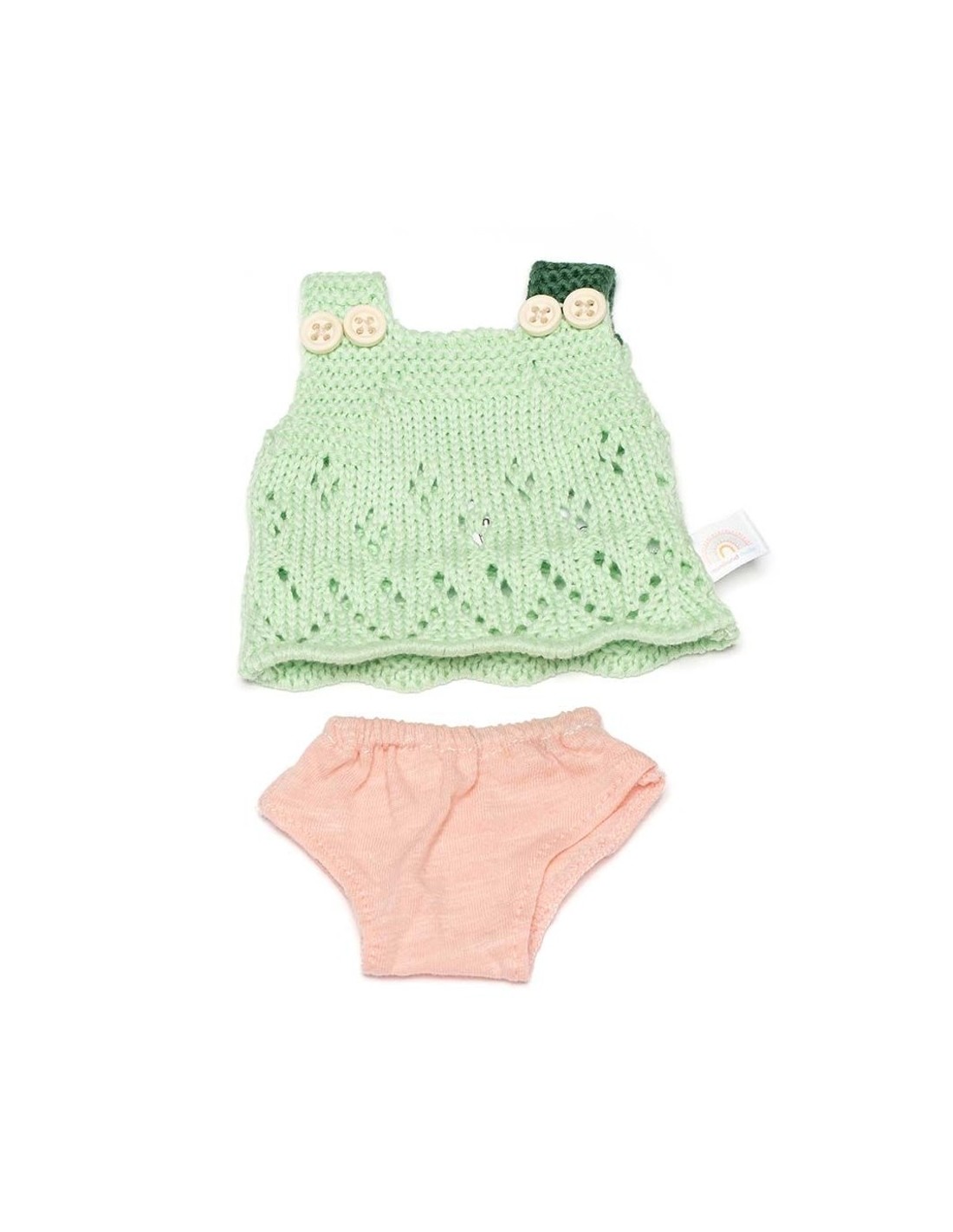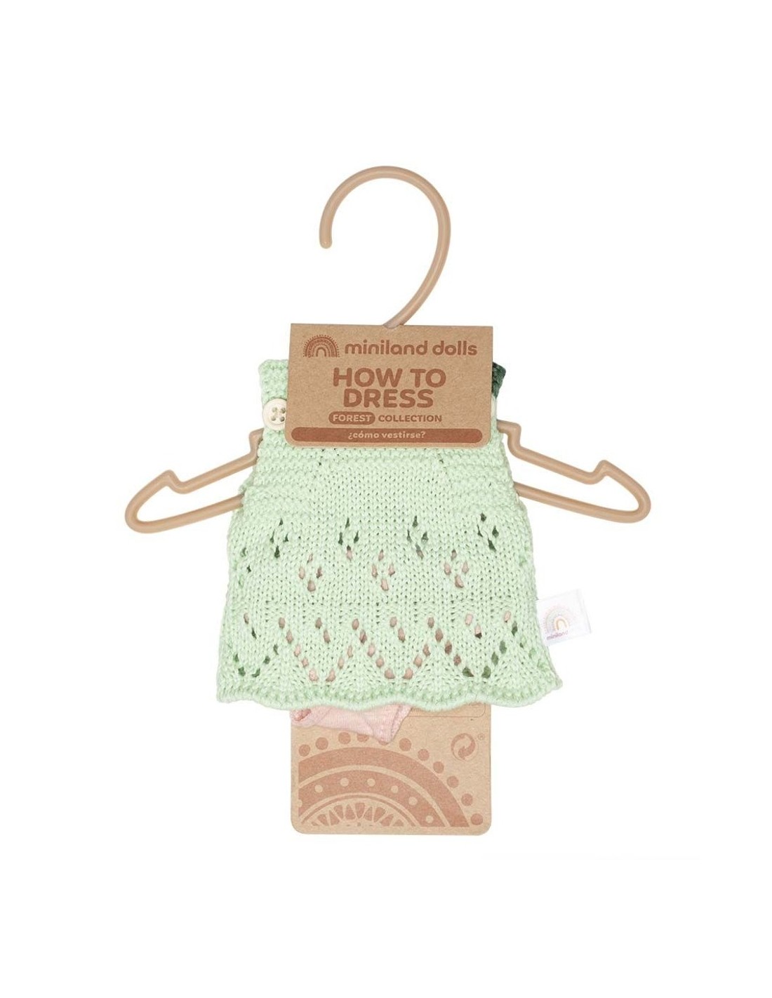 De la mà de la marca Miniland et portem aquest adorable conjunt nina forest, per a nines i ninots de 21 centímetres. Miniland presenta aquesta nova col·lecció de robeta i accessoris per a nines. Inclou les peces i complements més habituals en situacions quotidianes del bebè com l'hora del bany, la migdiada o el passeig. Amb diferents tipus de cordis per a ajudar al desenvolupament de la psicomotricitat fina.