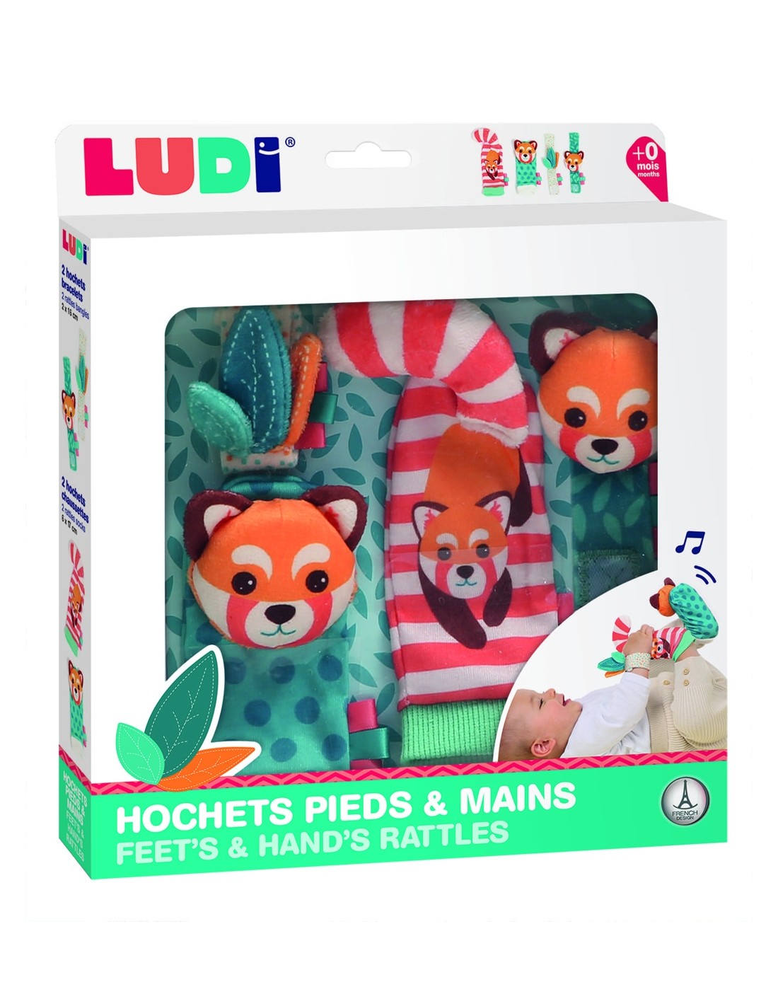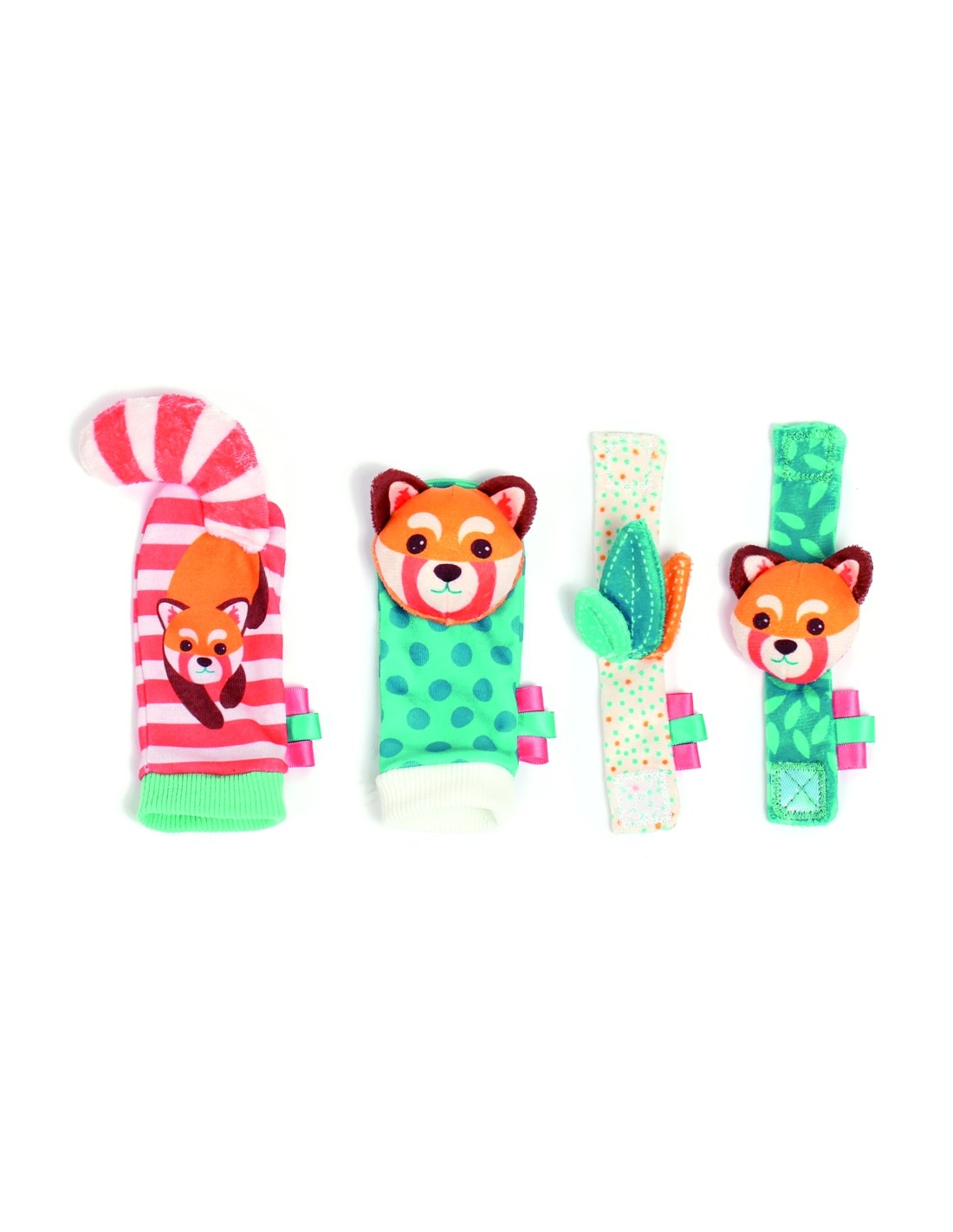 Des del naixement, els bebès adoraran agarrar-se dels peus i se sentiran captivats pels sonalls ajustables per a peus i mans. Els adorables caparrons de guineu, amb els seus divertits dissenys i vius colors, estimularan la motricitat i el despertar del bebè gràcies a les seves múltiples activitats, que inclouen textures variades, paper arrugat, cascavells i cintes.