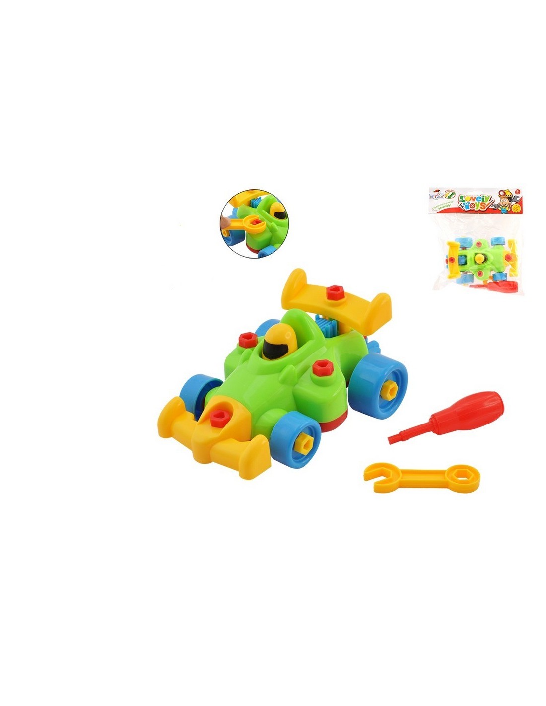 Aquest cotxe de carreres tan acolorit està llest perquè el muntis i desmuntis amb les eines que inclou: un tornavís i una clau anglesa. Corre, que ja arriba el pilot al pit stop, posa't en marxa! Aquest és un article molt econòmic, ideal per a fer-li un detall a grups grans de nens.