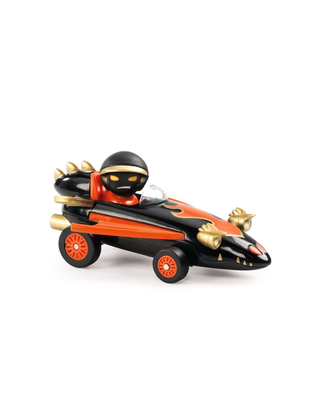 Dragon Fire, l'intrèpid pilot de les flames, domina la pista amb el seu vehicle supersònic a l'emocionant col·lecció Crazy Motors de Djeco. Quan sent que algú està a punt d'avançar-ho, Dragon Fire desferma potents flames des del seu cotxe, deixant els seus oponents embolicats en pols i assegurant la victòria a cada cursa. Aquest cotxe no només és una màquina de velocitat, sinó també una exhibició de poder i audàcia a la pista.