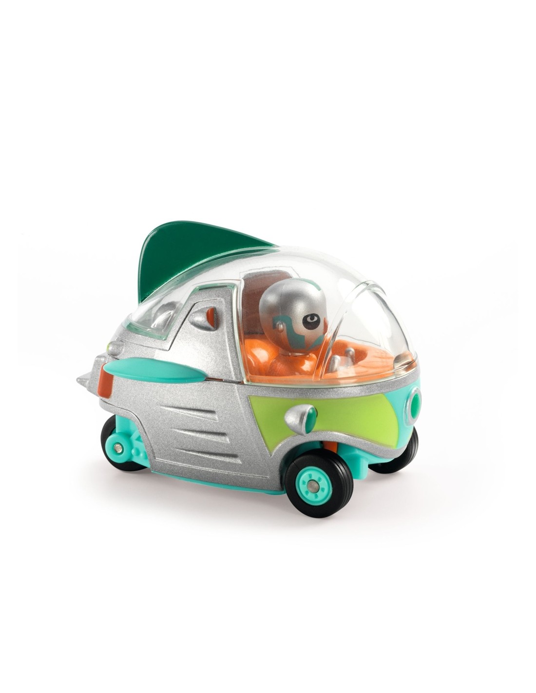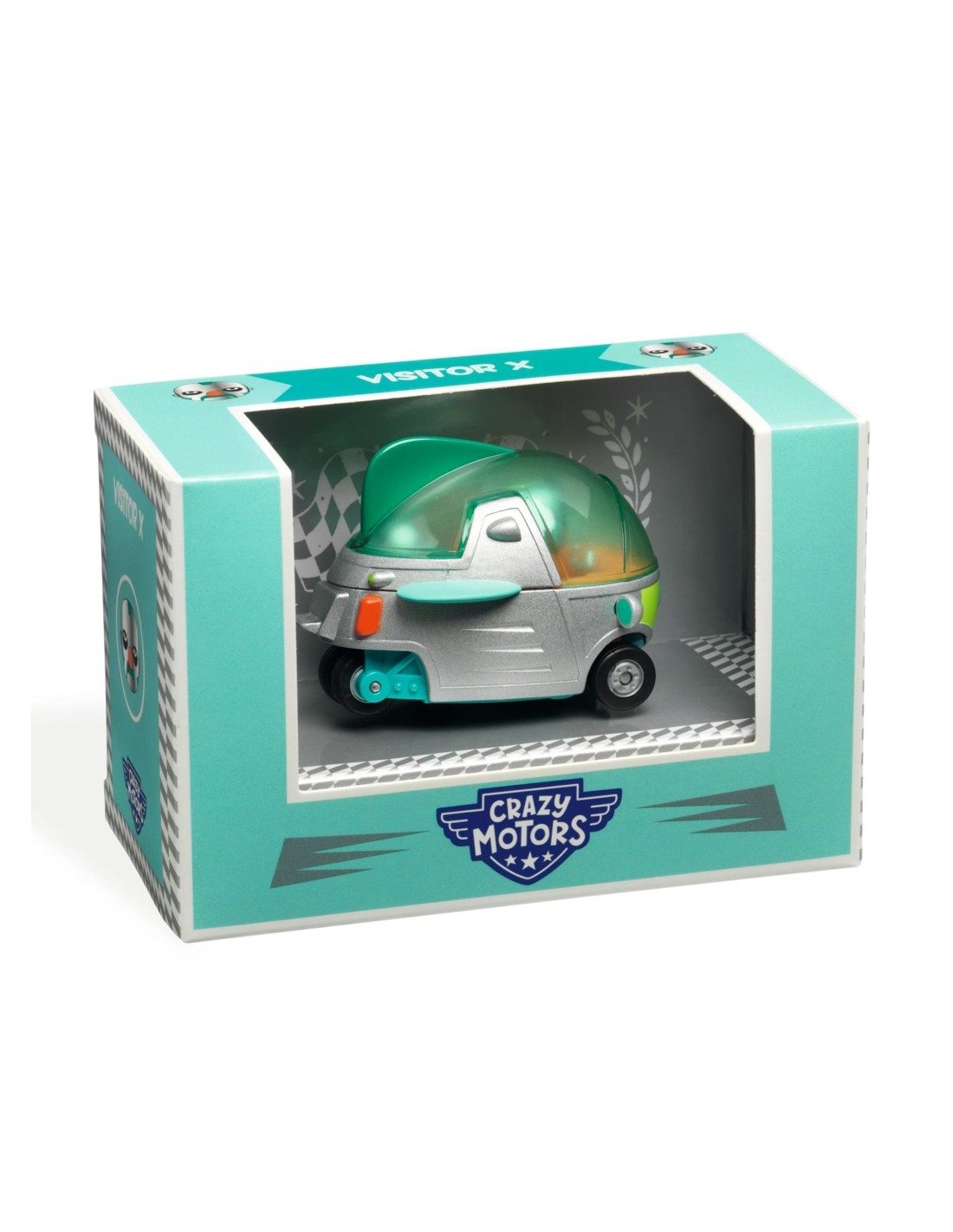 La col·lecció Crazy Motors de Djeco presenta els més bojos pilots al volant de bòlids supersònics i, entre ells, destaca el Visitant X. Aquest vehicle no identificat ofereix una experiència de joc única i futurista, amb un disseny que desafia les convencions i suscita preguntes intrigants. Des de la primera ullada, et submergiràs en un món de misteri i velocitat.
