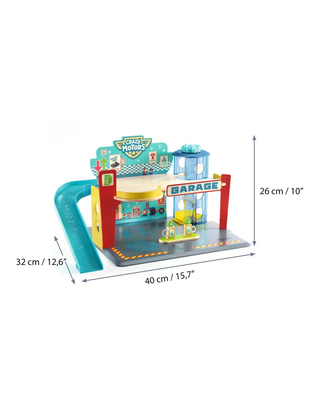 Benvingut a l'emocionant món de Crazy Motors amb el flamant Garatge de fusta de Djeco! Aquest garatge, dissenyat amb enginy i originalitat, és el company perfecte per als cotxets de la sèrie Crazy Motors. Construït en dos nivells connectats per una rampa per a una ràpida escapada, aquest garatge ofereix una infinitat de possibilitats per a la diversió automotriu.