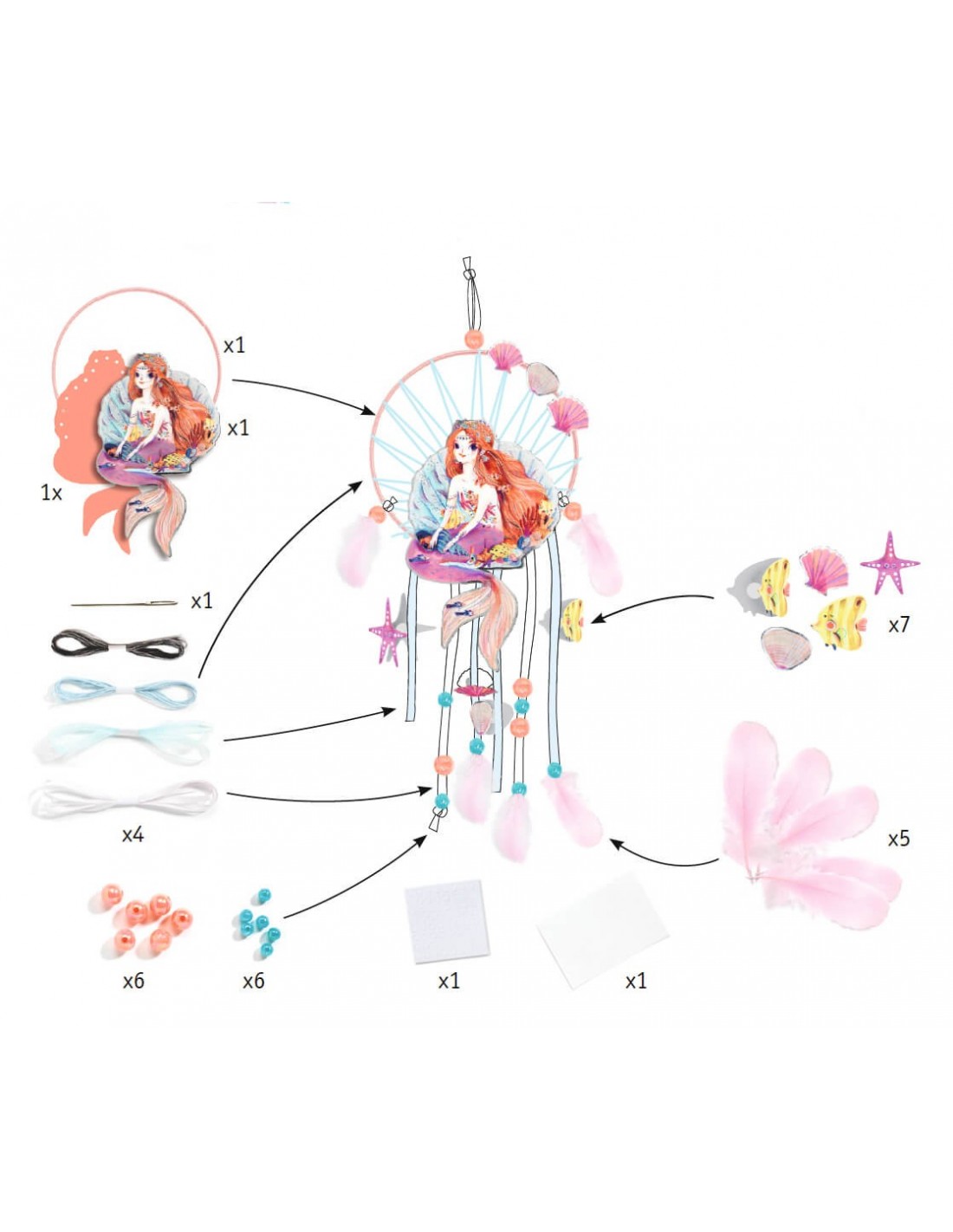 Amb aquest pack de Djeco podràs crear un preciós atrapasomnis per a col·locar-lo prop del teu llit i que així capturi i allunyi a tots els mals somnis. Ho passareu genial i quedarà fantàstic! Les mesures del atrapasomnis són 40 cm de llarg i 15 cm de diàmetre.