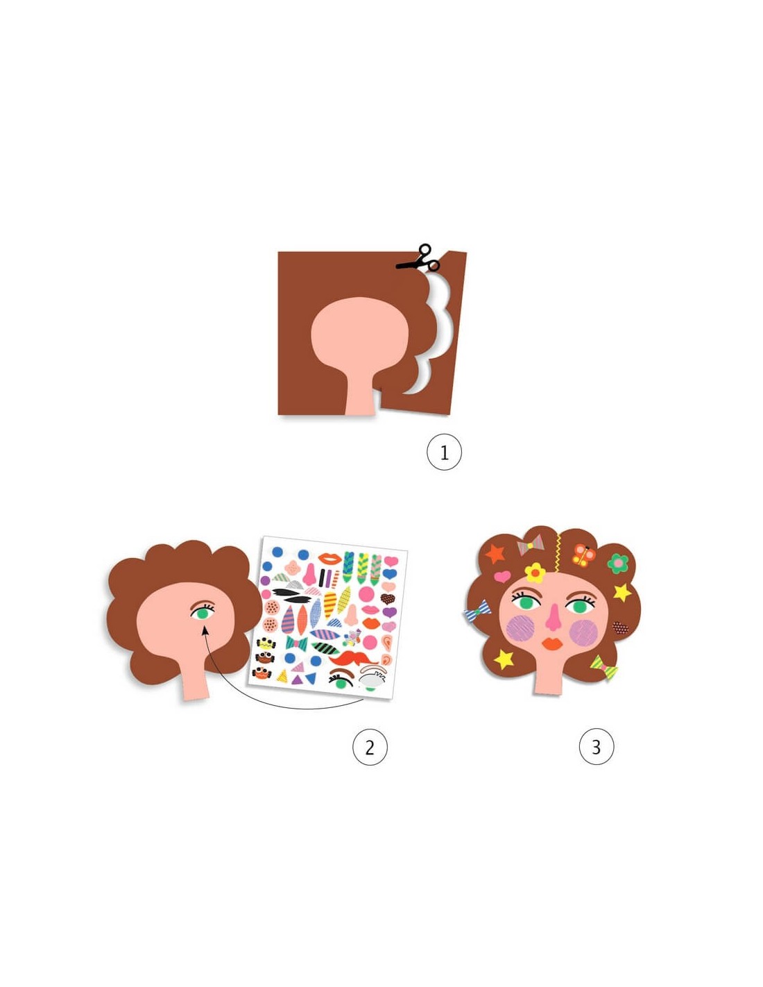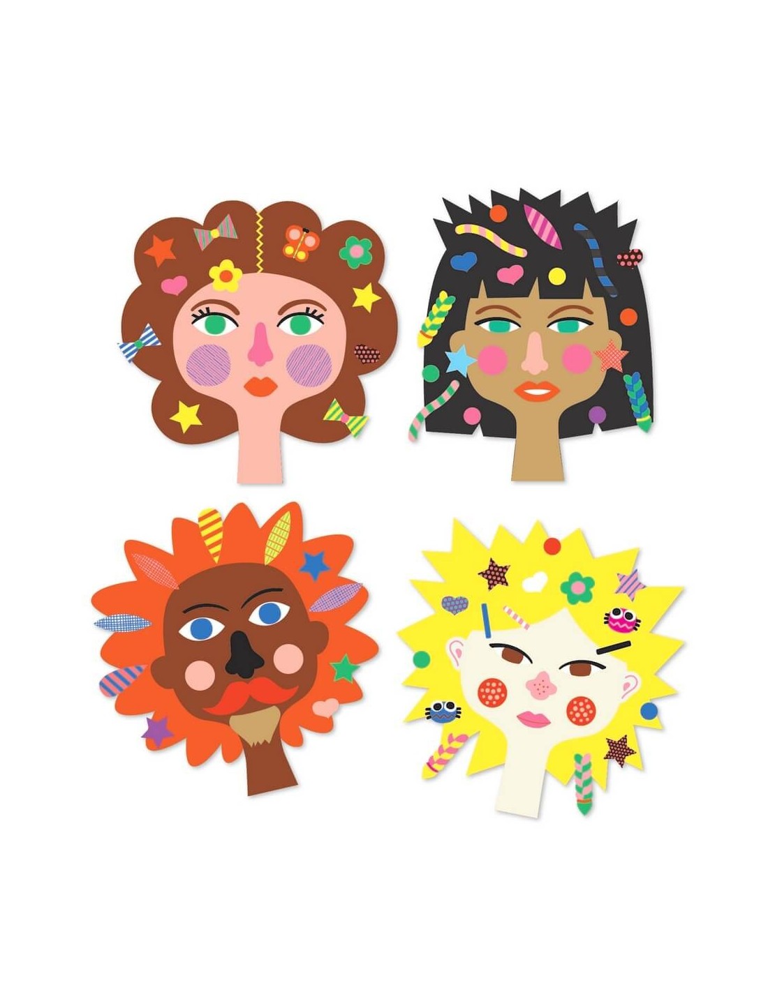 Atenció, petits artistes! Us portem, de la mà de la marca francesa Djeco, un joc d'allò més divertit i creatiu: crea amb stickers! Aquests vénen acompanyats d'unes divertidíssimes imatges de caps amb cabell que podràs decorar: ulls, ulleres, bigotis, accessoris... tot el que puguis imaginar! Anem a la perruqueria!