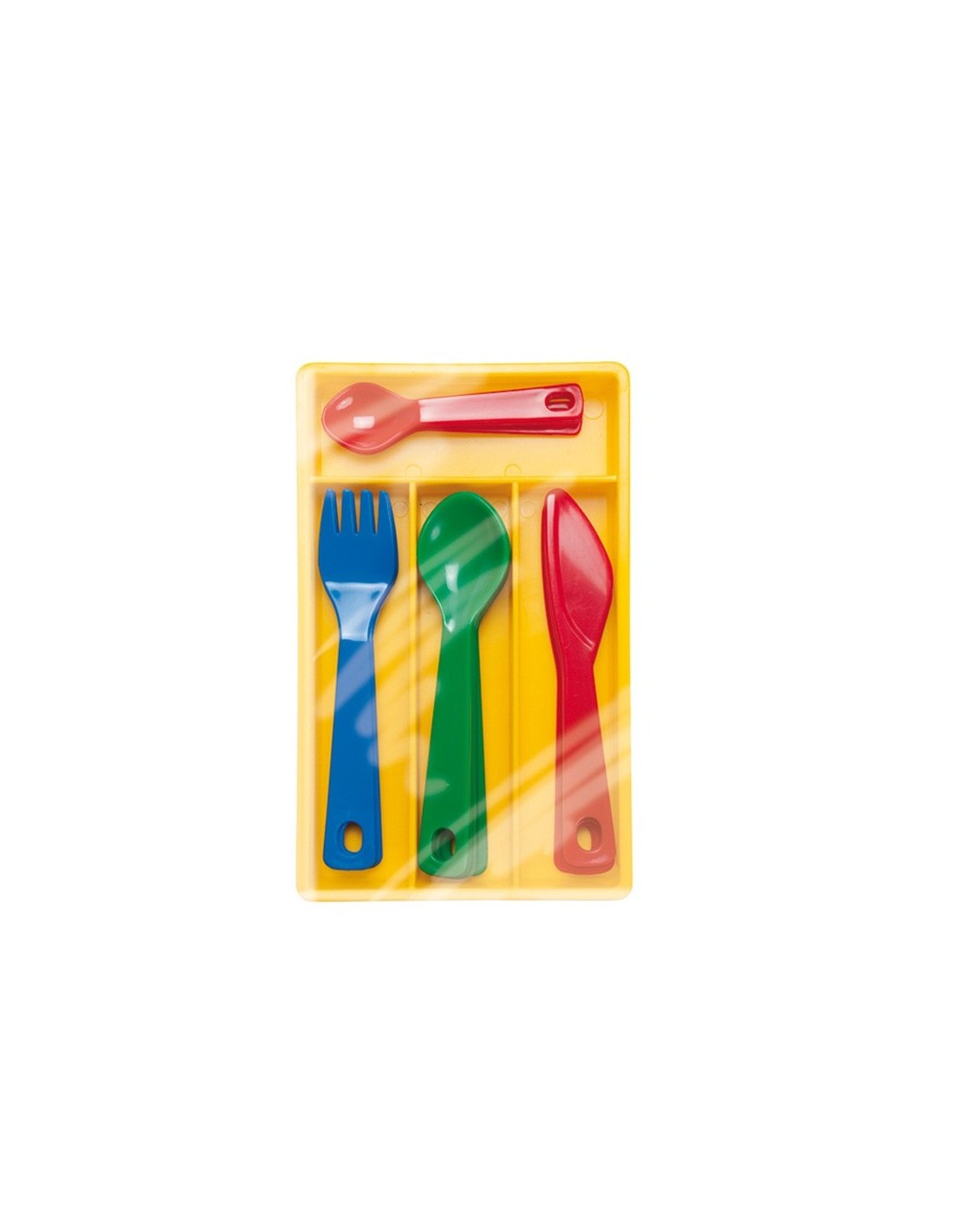 Aquesta coberteria de joguina inclou 12 peces de colors molt vius, propis de la marca Dantoy, fetes de plàstic resistent. Perfecte per a jugar a les cuinetes i els restaurants. Passeu una divertida estona en família amb aquesta coberteria de joguina!