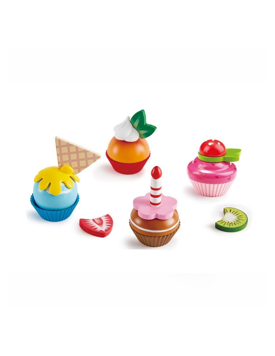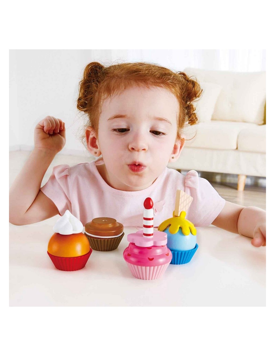 És hora d'un dolç esmorçar... O un dolç berenar! Amb aquest conjunt de cupcakes de fusta podràs muntar vistoses magdalenes amb les diferents combinacions possibles i, fins i tot, bufar una vegada i una altra l'espelma d'aniversari que s'inclou. Quina delícia!