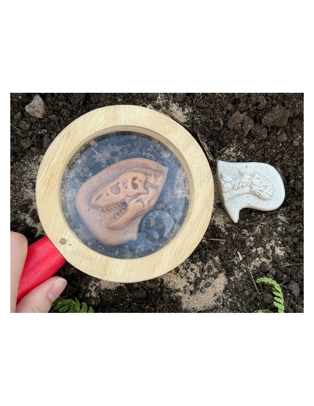 Aquest joc també és ideal per a promoure la curiositat natural dels nens pel món dels dinosaures. En comparar els fòssils, els nens podran conversar sobre els seus descobriments, aprenent sobre els hàbitats, dietes, grandàries i característiques de cada dinosaure. Les peces elevades ofereixen una retroalimentació sensorial excel·lent, la qual cosa les converteix en eines perfectes per a fer impressions en plastilina, ampliant així l'experiència sensorial.
