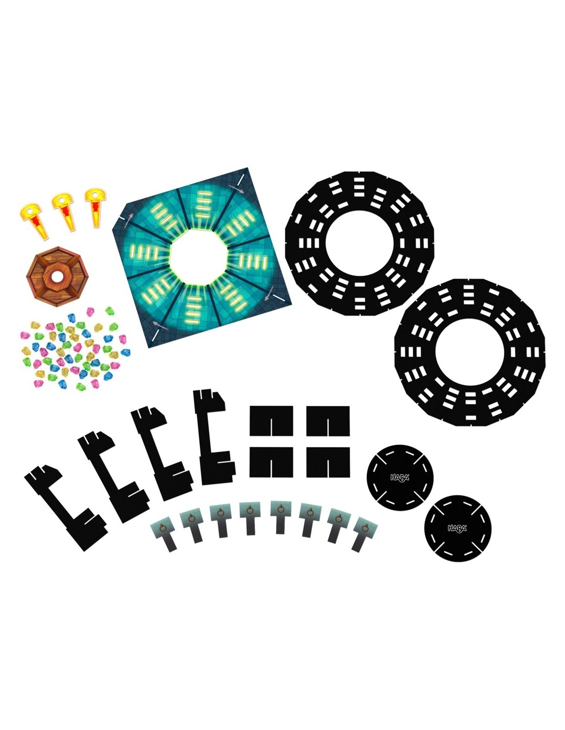 El contingut de la caixa inclou 1 base de la caixa, 1 tauler, 2 matrius perforades, 1 tapa, 3 claus, 52 pedres precioses i un conjunt de 18 adhesius. Tot està dissenyat per a oferir una experiència lúdica completa i desafiadora, on cada element contribueix al desenvolupament del joc i augmenta l'emoció de la partida.