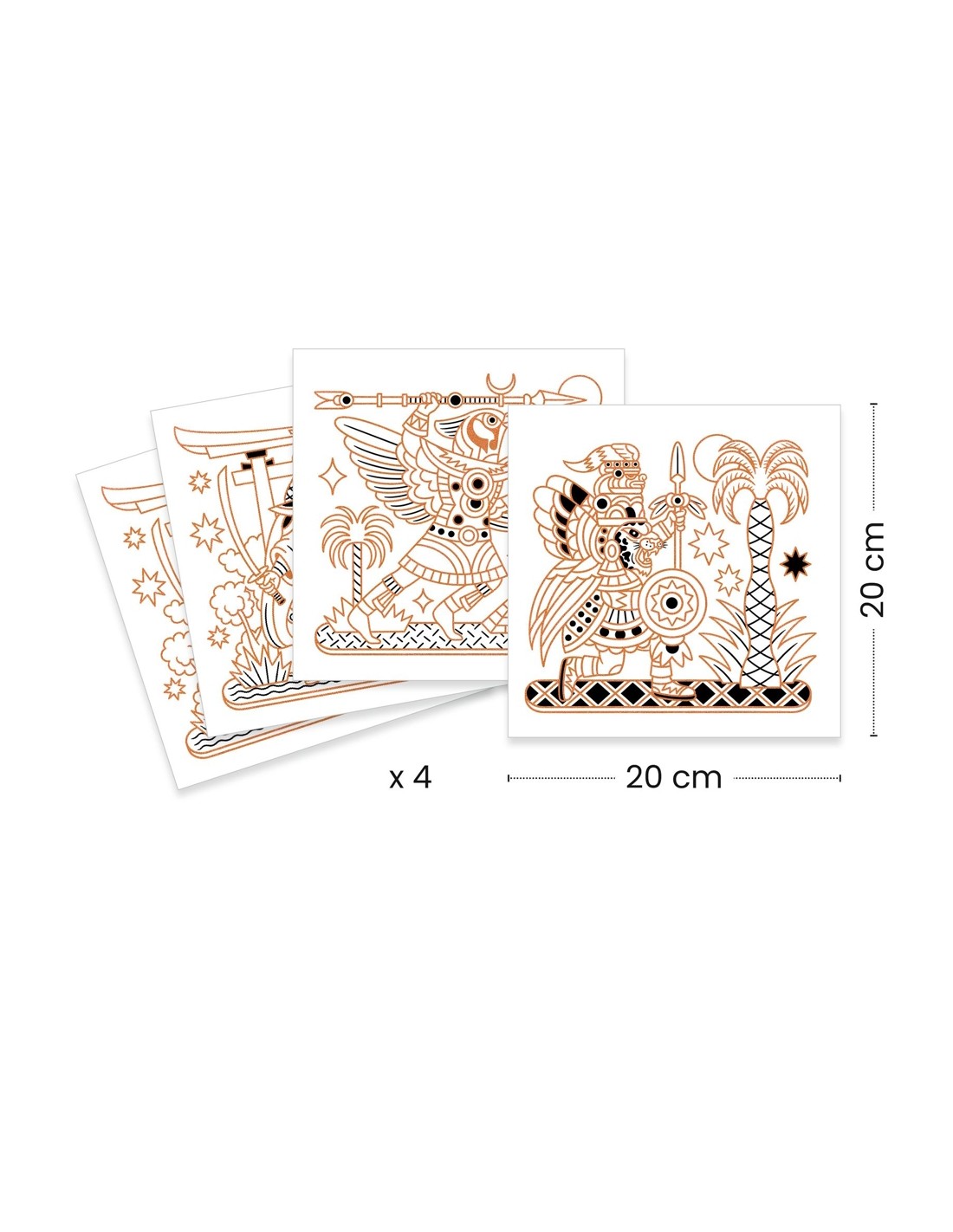 Els anells daurats en relleu presents a cada làmina no només són elements decoratius, sinó també eines pràctiques que faciliten la coloració. Guiant la punta del retolador, aquests anells eviten que es pinti per sobre de la vora, garantint un acabat precís i detallat. La innovació de Dibuixos Brillants - Animals Guerrers no s'atura aquí; els anells metal·litzats afegeixen una brillantor resplendent a cada imatge, portant els nens a un viatge visual únic i estimulant.