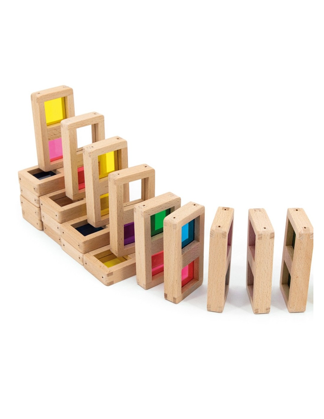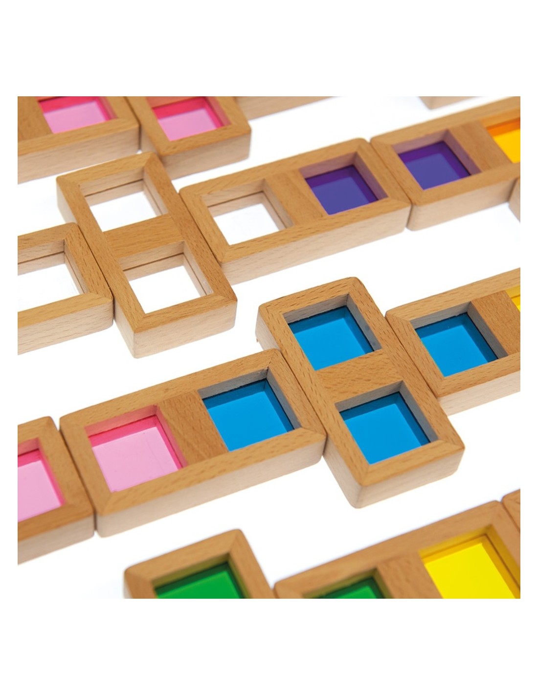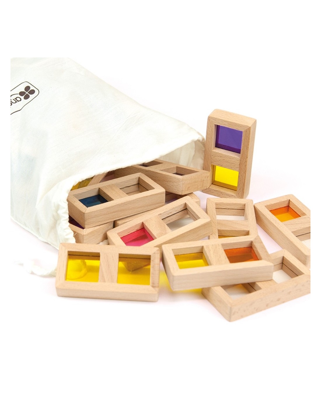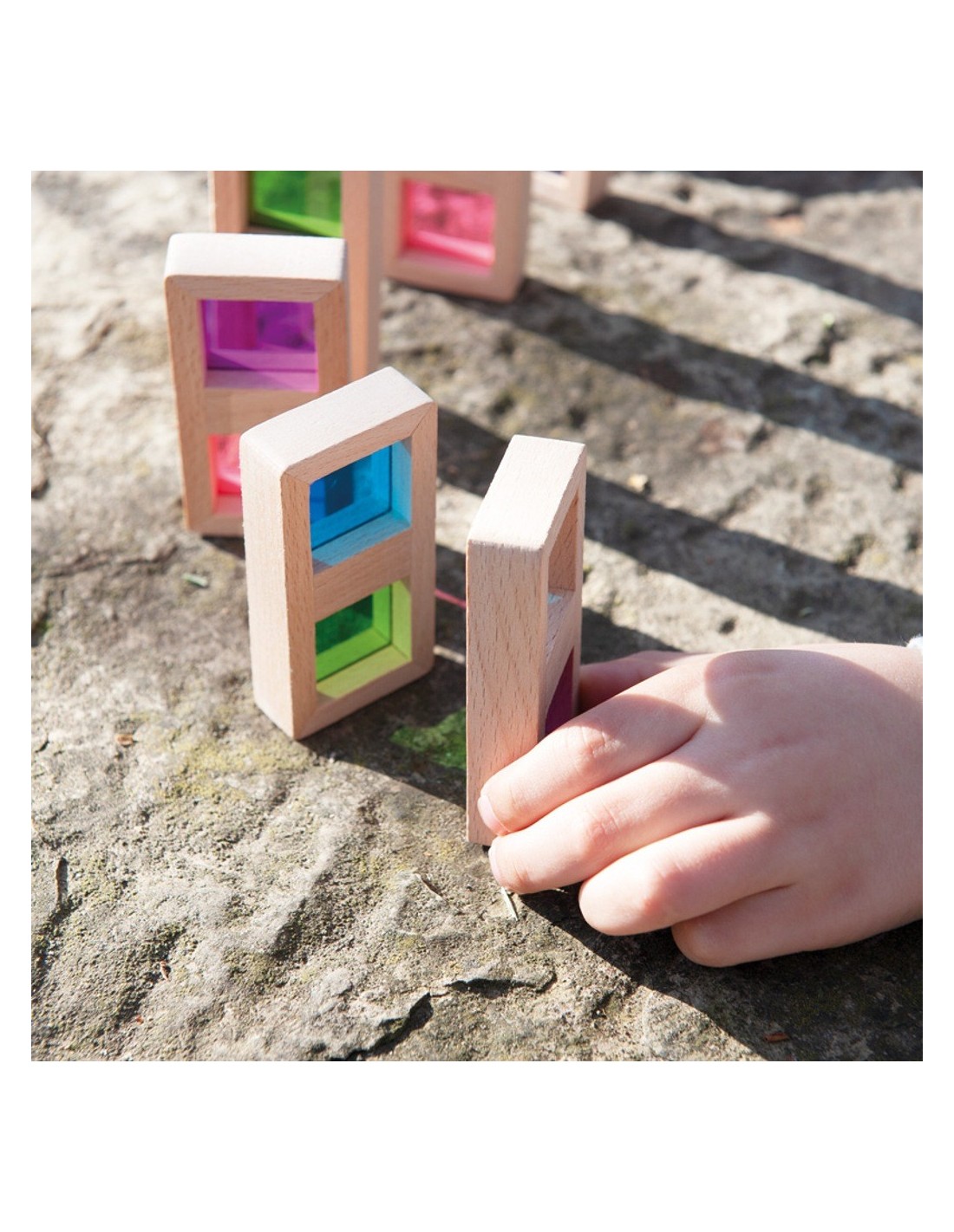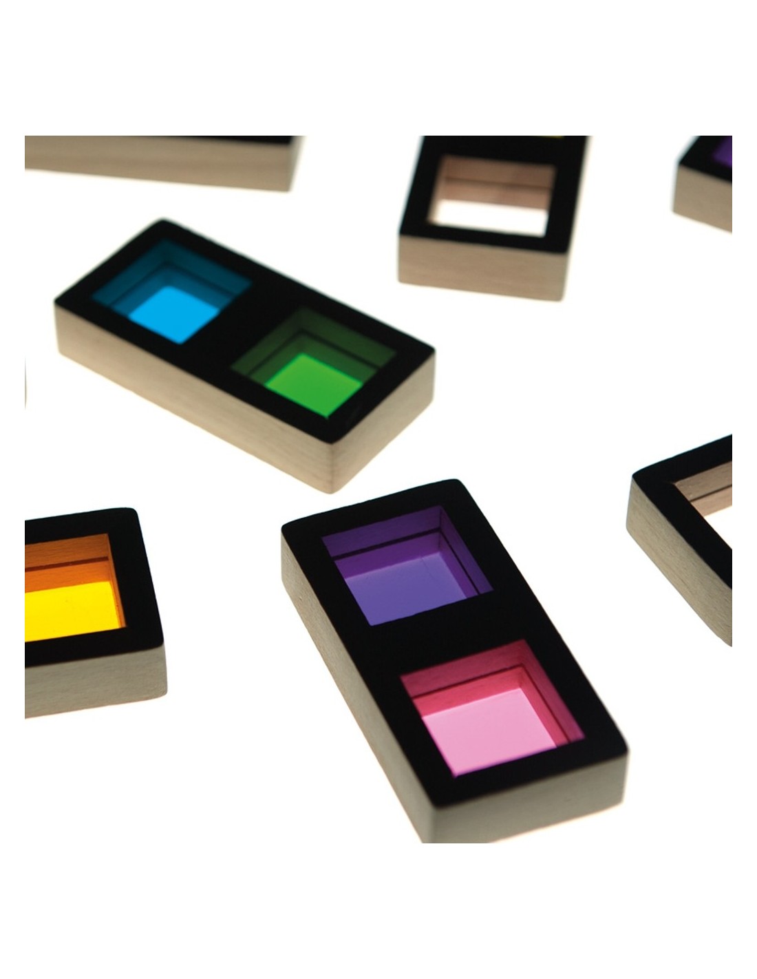 Aquest dominó translúcid d'Andreu Toys inclou 28 peces amb 7 colors diferents, ideal per a jugar en les taules de llum.Usa la teva imaginació per a construir amb les peces de fusta i les transparències de colors.