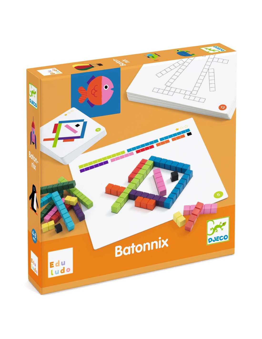 A més, Batonnix contribueix al desenvolupament de la motricitat fina i la coordinació ull-mà en manipular els pals de fusta, ajustant-los per a crear les figures exactes de les targetes. Aquestes activitats requereixen precisió i control, per la qual cosa els petits treballen també les seves habilitats manuals i concentració. En enfrontar-se a diferents reptes de construcció, els nens milloren la seva percepció espacial i el seu sentit de la proporció, habilitats essencials per a l'aprenentatge de les matemàtiques.