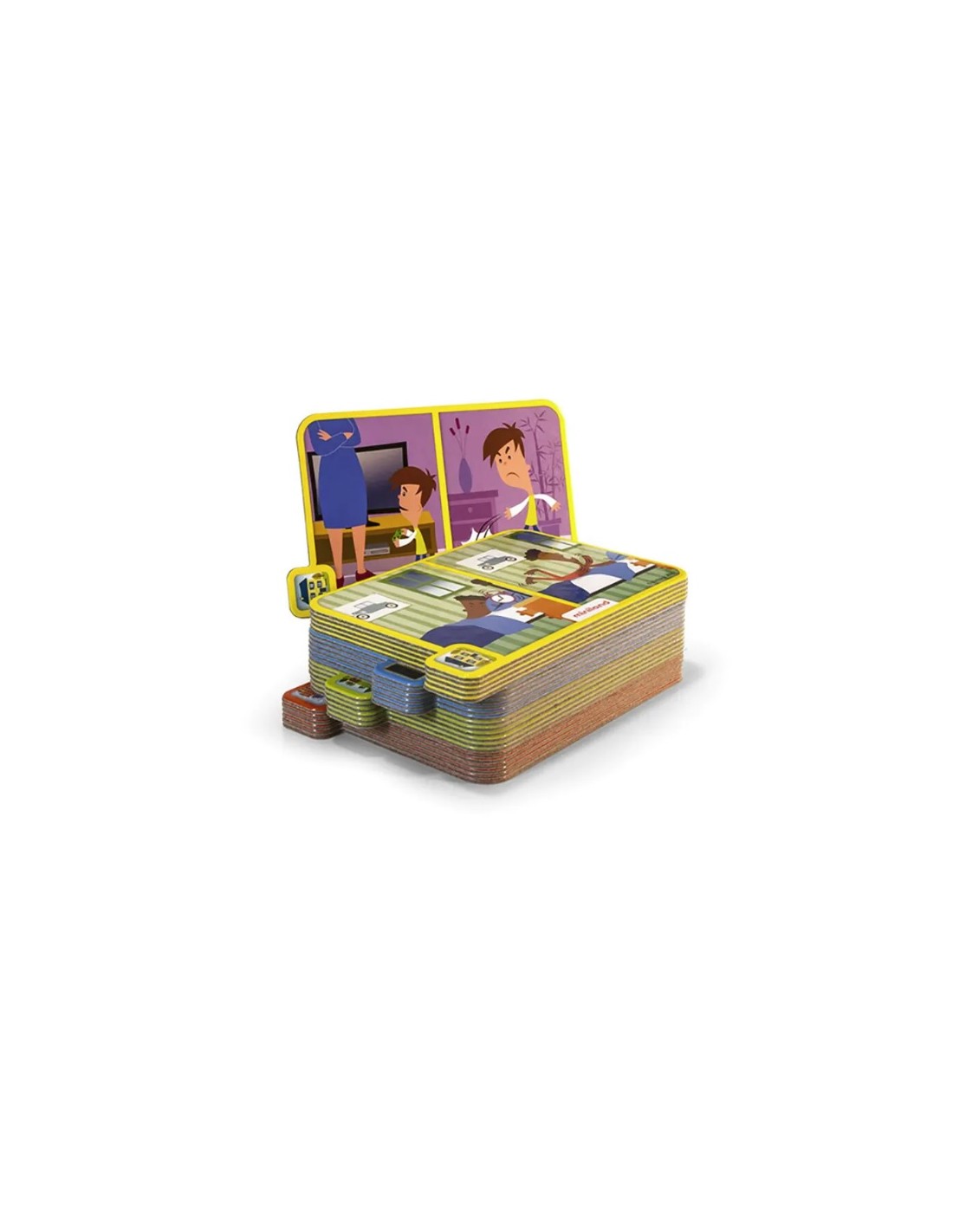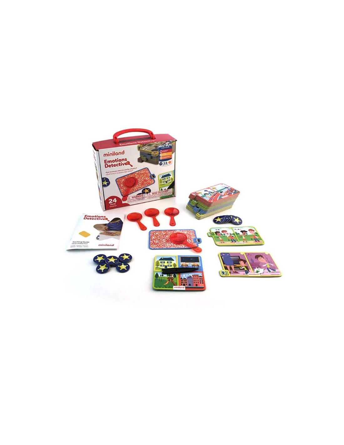 Amb Emotions Detective et podràs convertir en un vertader detectiu dels sentiments. Fes rodar la ruleta, esculla una targeta i guanya estrelles identificant diferents emocions. Un joc molt entretingut per parlar i comprendre els conflictes quotidians amb els que es troben els nens. Un joc que potenciarà l'expressió i la gestió dels sentiments interpretant com creus que es senten els personatges de les targetes. Si vols resoldre el cas d'una vegada per totes, hauràs d'utilitzar la lupa. Afavorirà la tolerància i l'empatia en els més petits. Inclou 24 targetes, 18 estrelles, 1 ruleta i 1 lupa.