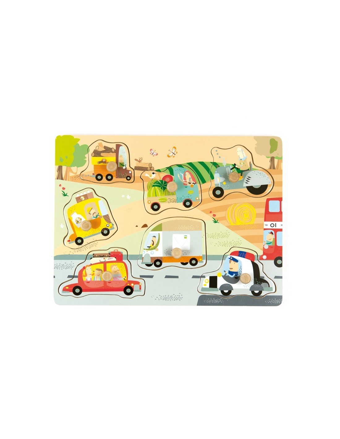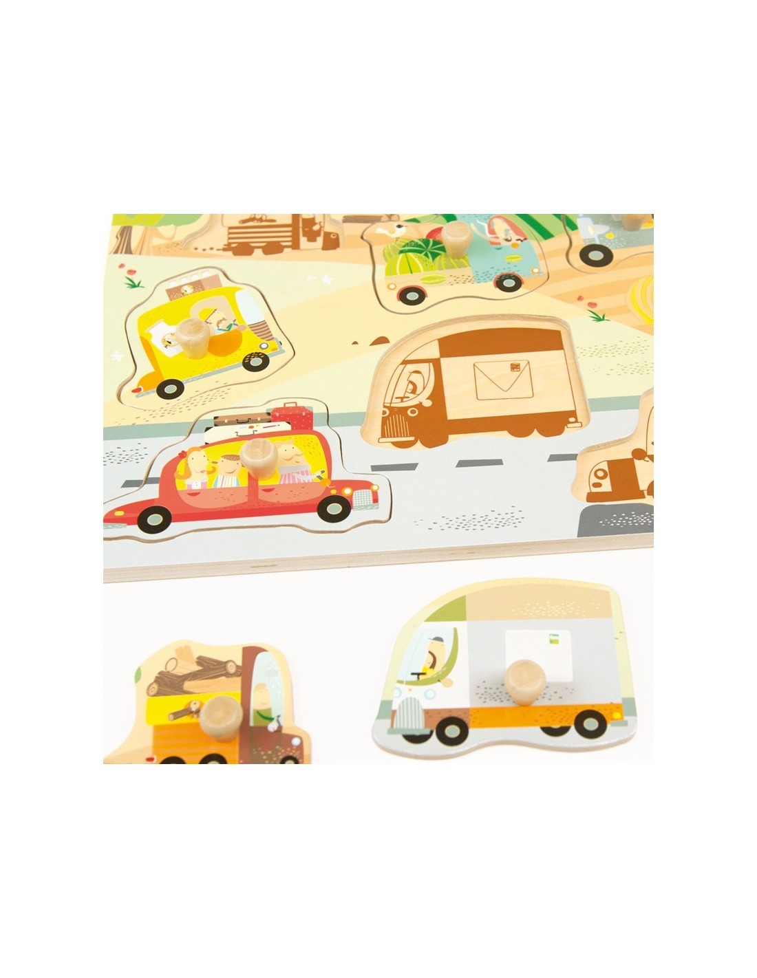 Et presentem aquest joc d'encaix dels vehicles d'Andreu Toys, una joguina feta de fusta i que compta amb 7 peces dels diferents vehicles que els nens poden trobar i que els nens hauran de col·locar.