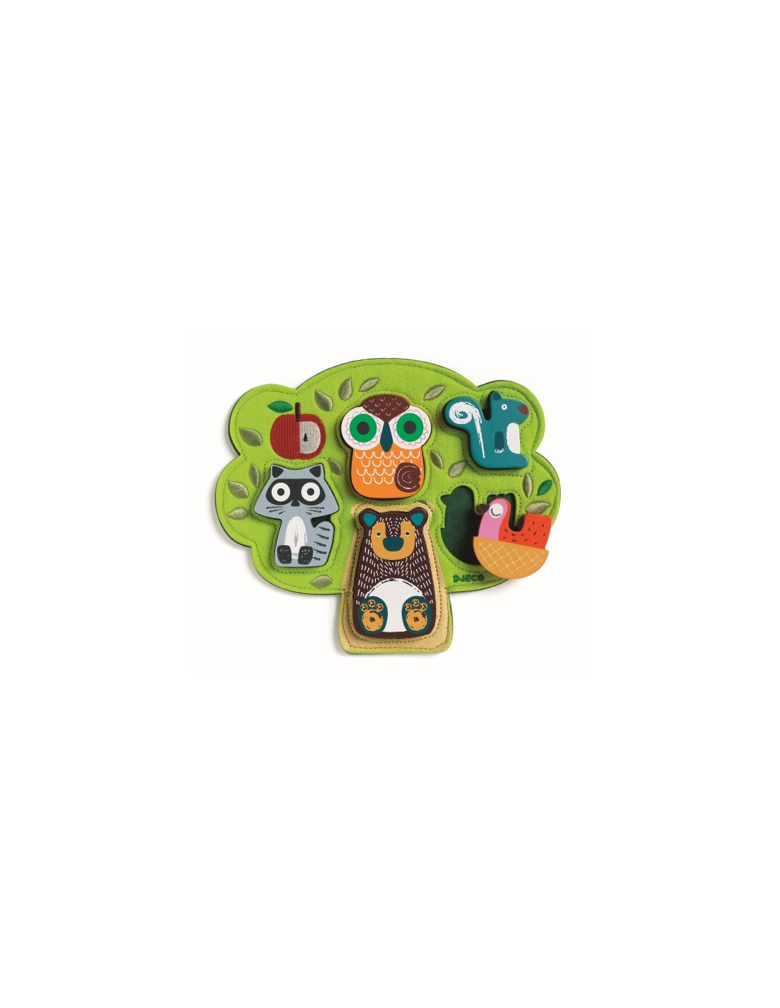 El conjunt inclou una base de feltre amb forma d'arbre, decorada amb estampats i brodats d'alta qualitat, que ofereix un tacte suau per a enriquir l'exploració sensorial. A més, compta amb cinc peces de fusta gruixuda en forma d'animals del bosc. Aquestes peces, fàcils d'agarrar per a les petites mans, estan dissenyades perquè els nens les encaixin en la base mentre desenvolupen habilitats motores fines i milloren la coordinació rajo-ull. Una característica única és que els animals també es mantenen drets, permetent que els nens prolonguin el joc més enllà de l'encaix i creuen històries imaginatives.
