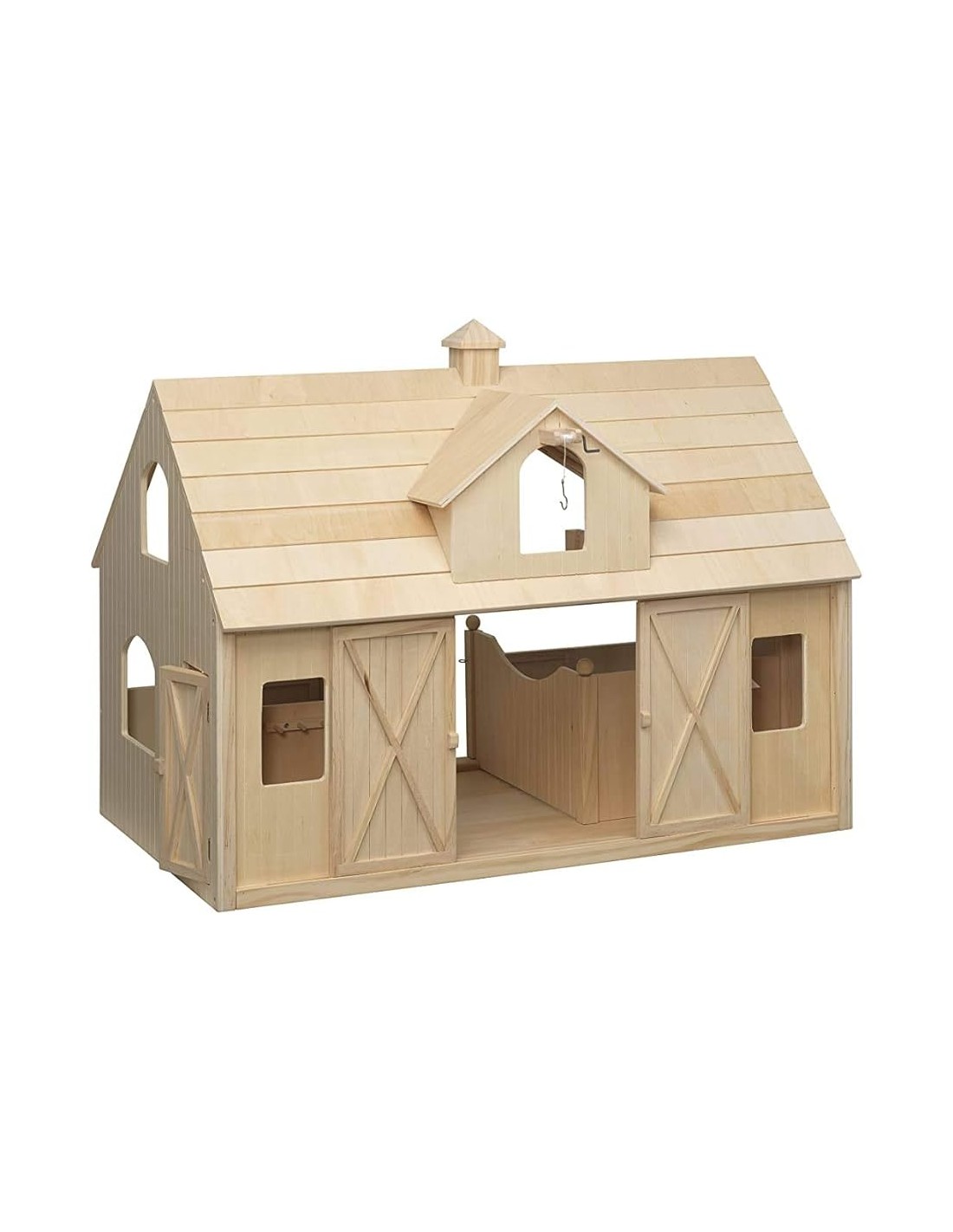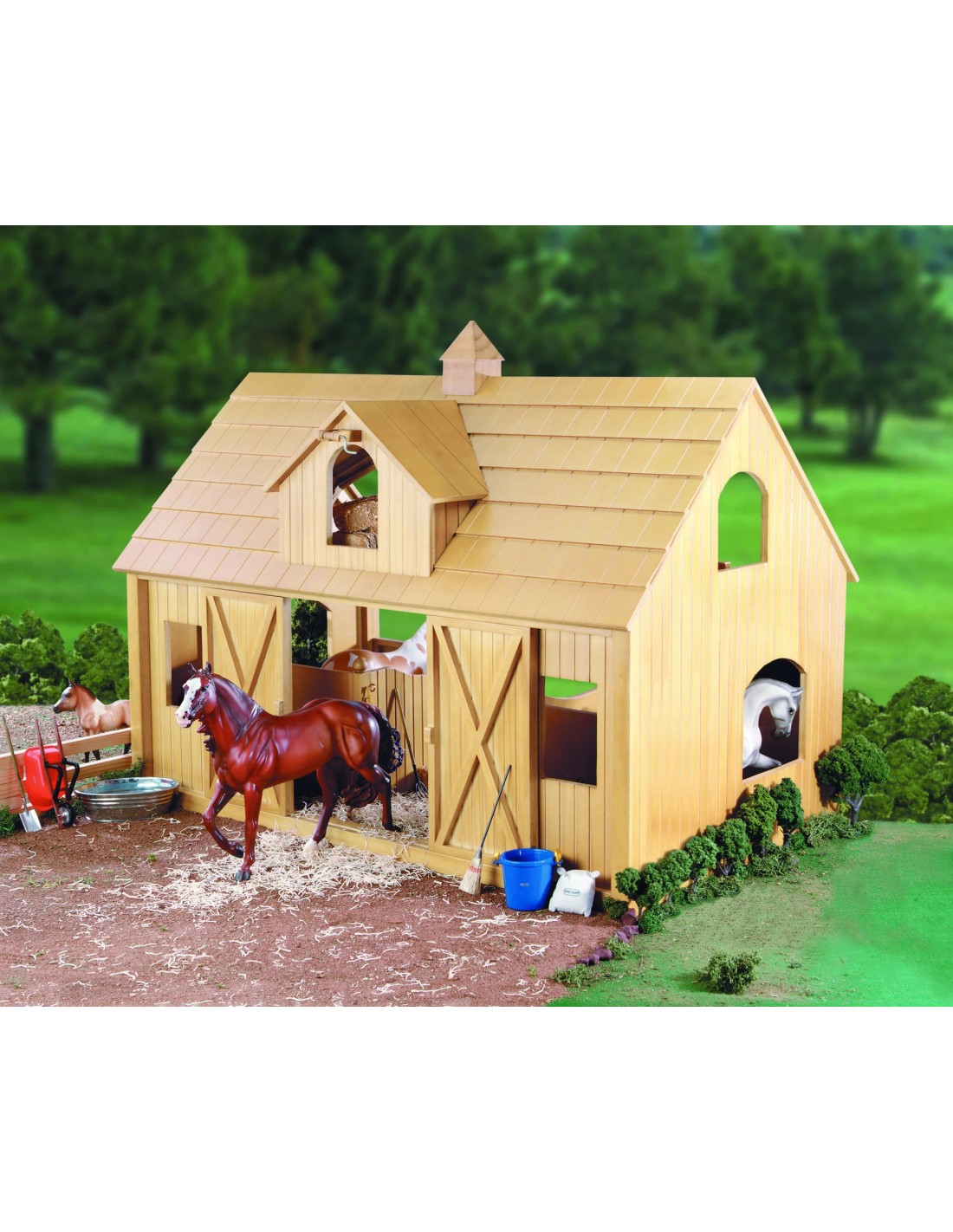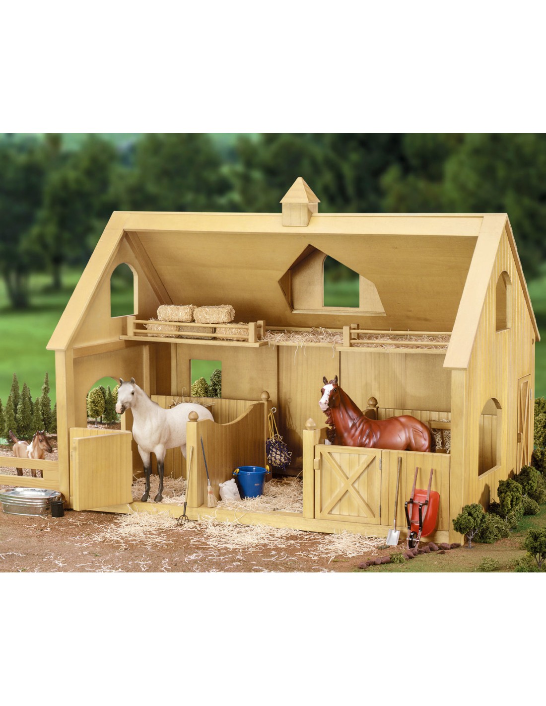 Benvingut a l'Estable Deluxe de fusta de la marca Breyer! Aquest impressionant estable és la llar perfecta per als teus cavalls de la Sèrie Tradicional, brindant un espai segur, còmode i autèntic per als teus fidels companys equins. Dissenyat amb un exquisit detall, aquest estable no sols és funcional, sinó també una peça bella que realçarà qualsevol col·lecció de cavalls.
